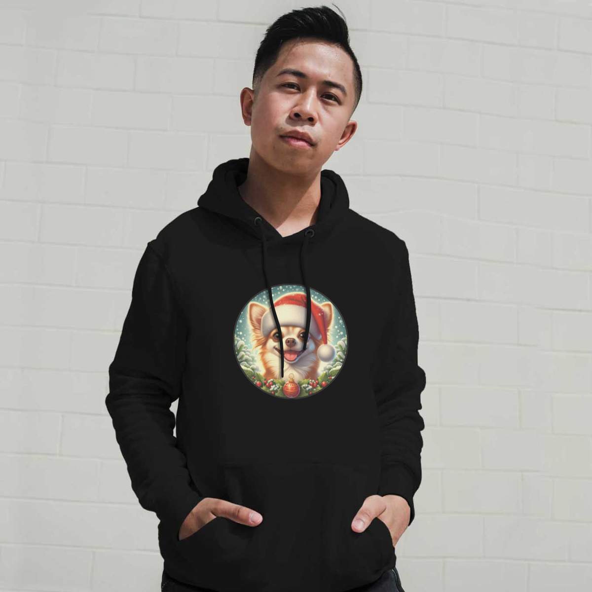 'dogs, chihuahua, christmas, santa hat, holly, '