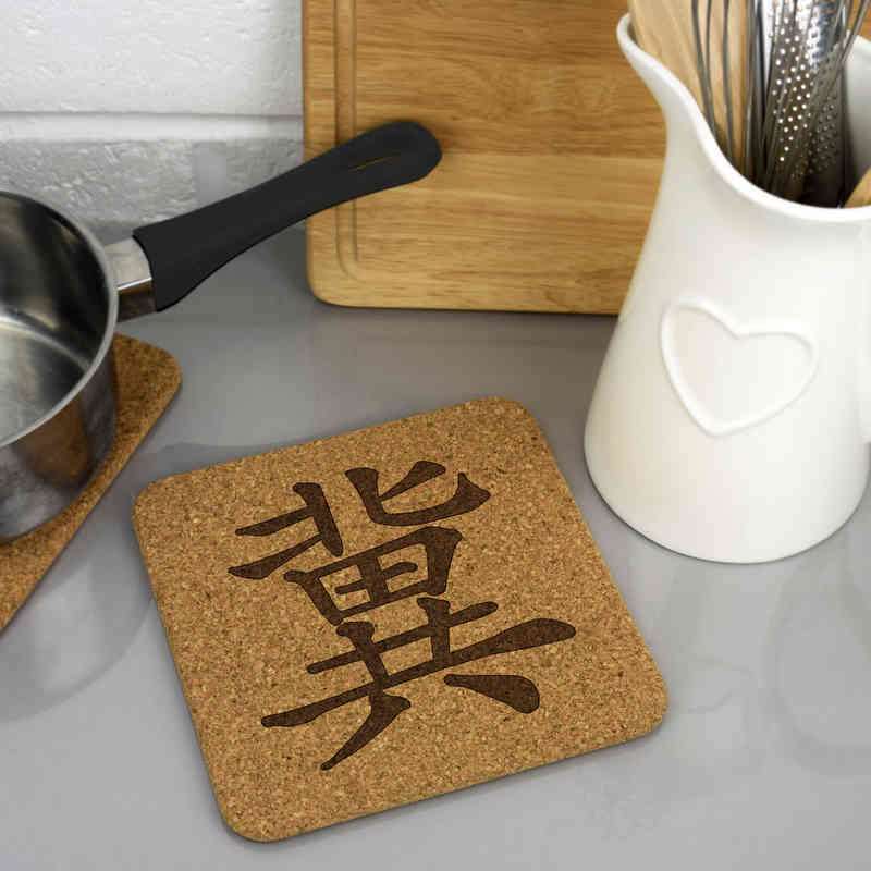 'Chinese Character' Square Cork Trivet / Pot Stand (TR00018167)