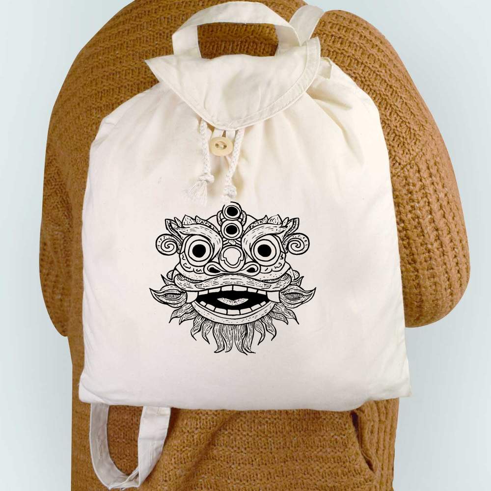 'Chinese Lion Mask' Canvas Rucksack / Backpack (RK00039882)