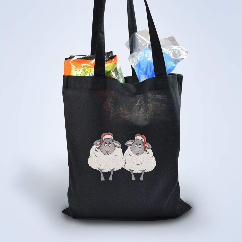 'Christmas Carol Sheep' Classic Black Tote Shopper Bag (ZB00011827)