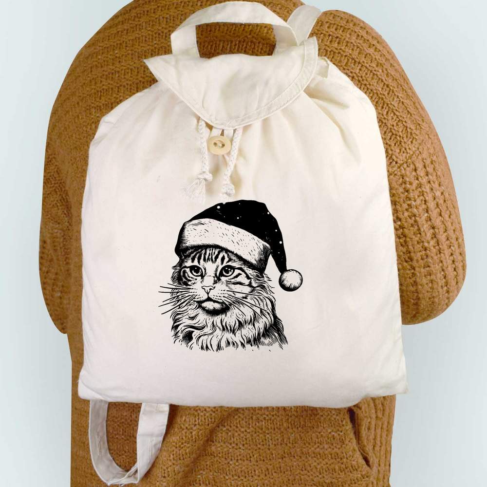 'Christmas Cat' Canvas Rucksack / Backpack (RK00030013)