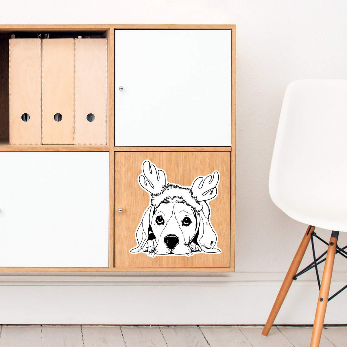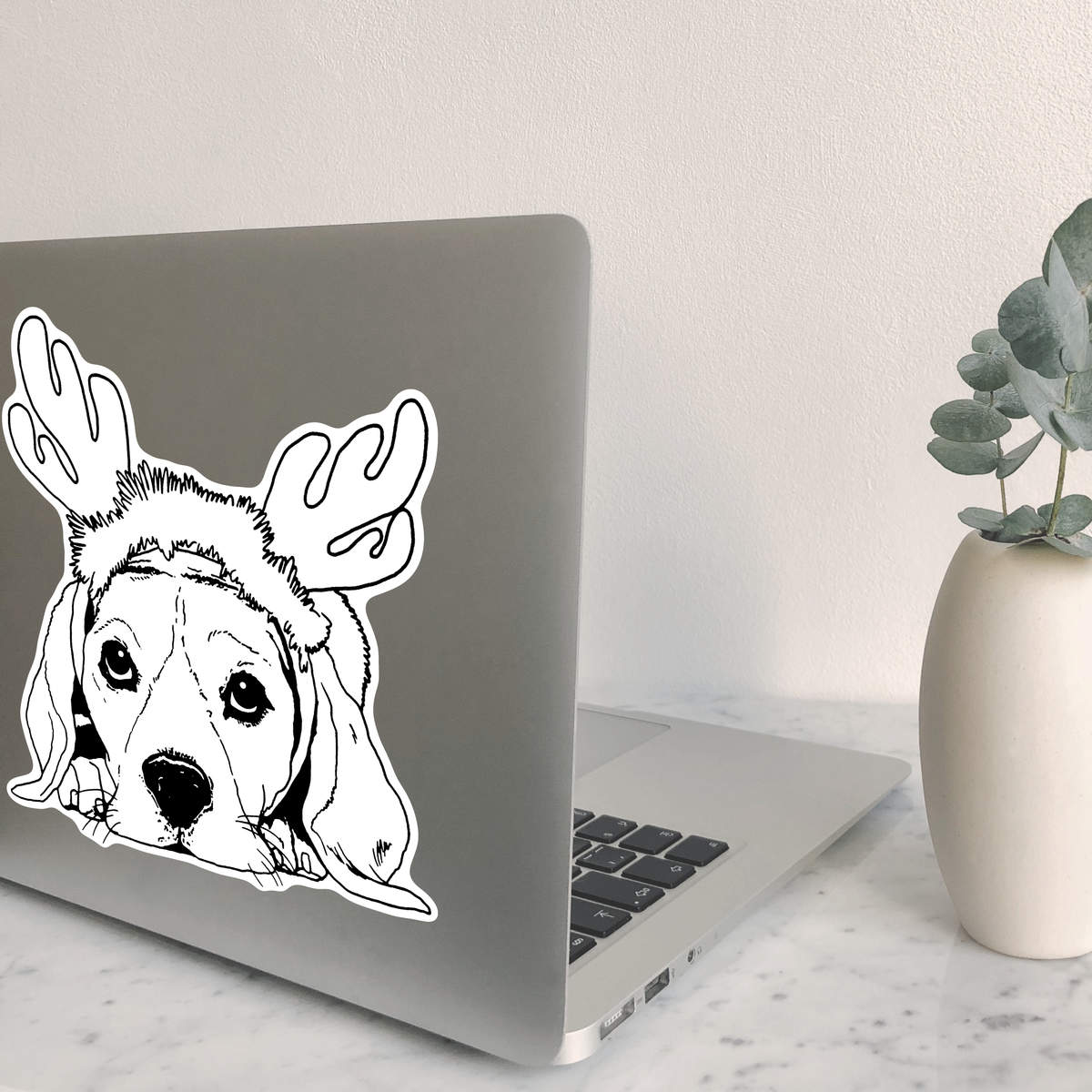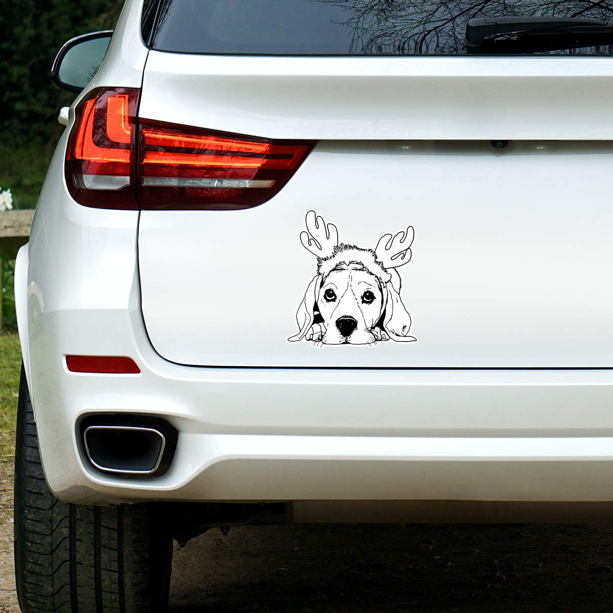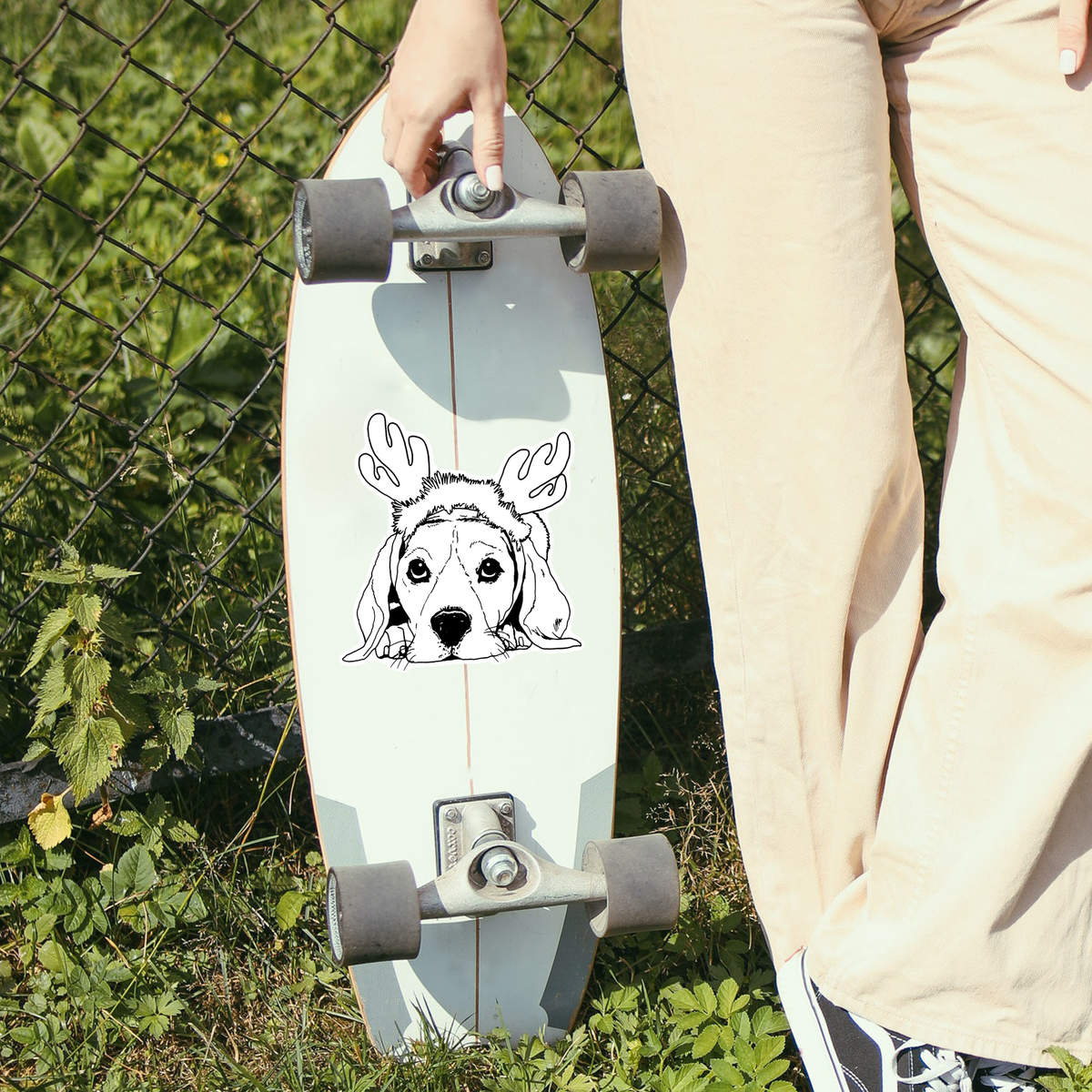 'Christmas Dog' White Premium Vinyl Decal Sticker – Waterproof, Durable & Easy to Apply - For Car Bumpers, Windows, Bins & More - Large (210mm) (DW00045275)