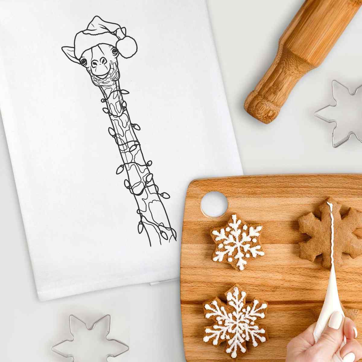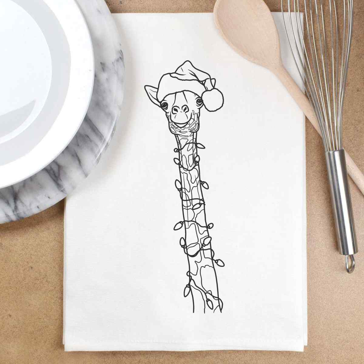'Christmas Giraffe' Cotton Tea Towel / Dish Cloth (TW036220)