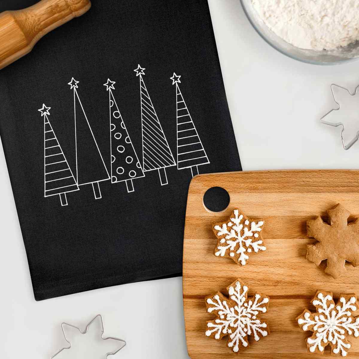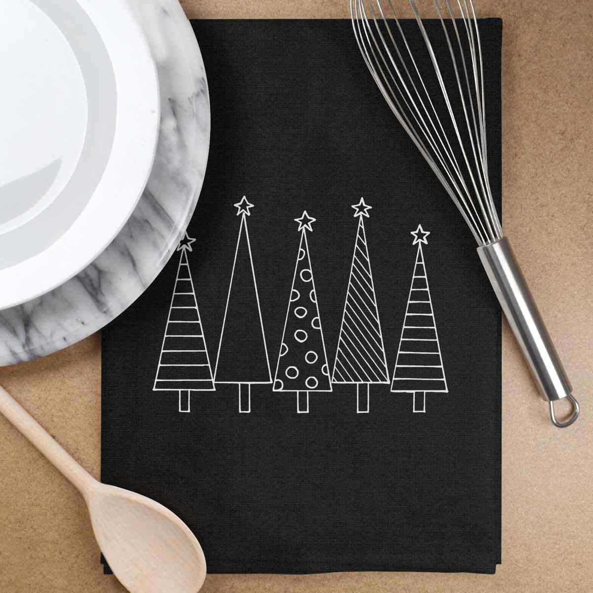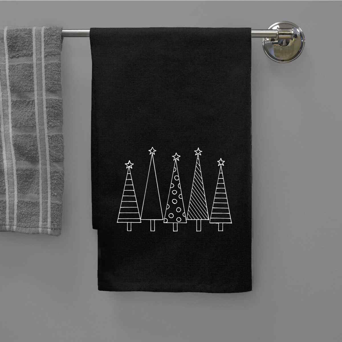'Christmas Trees' Black Cotton Tea Towel / Dish Cloth (TW00041689)