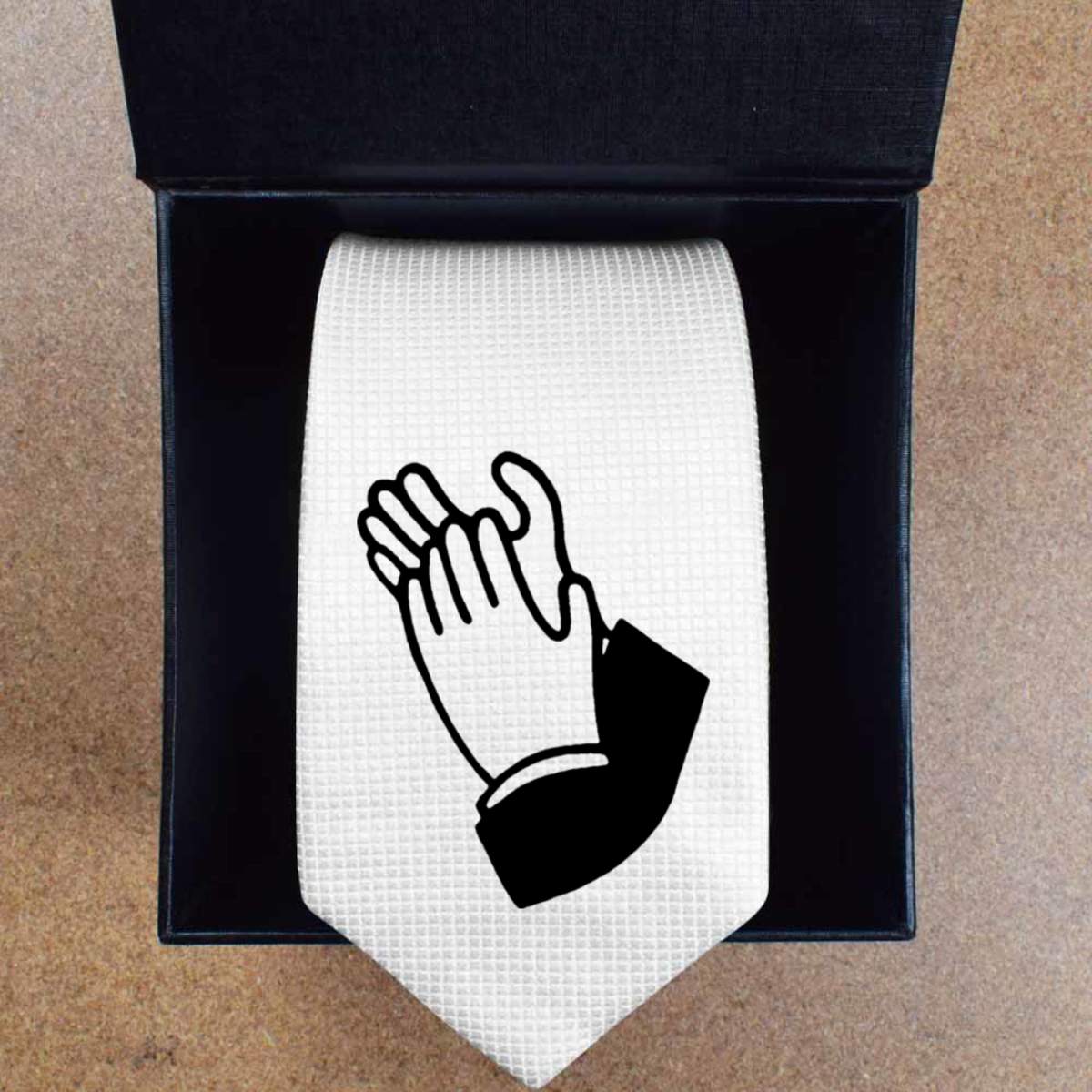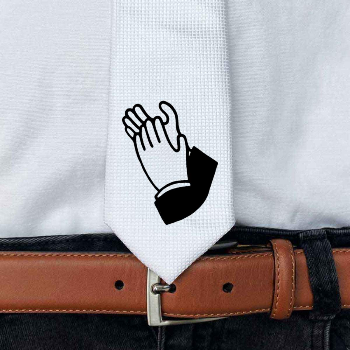 'Clapping Hands' White Tie / Necktie with Gift Box (AT00003465)