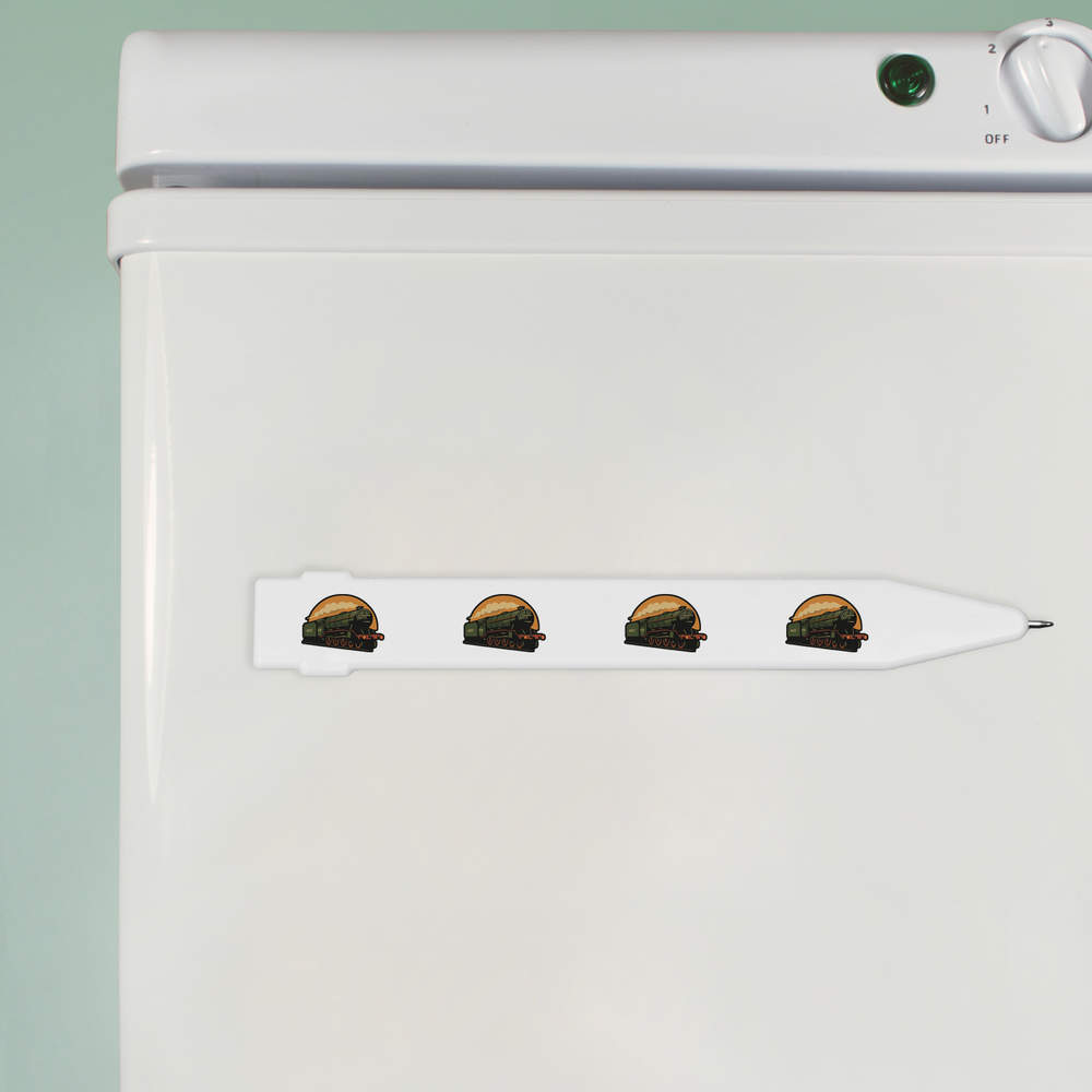 - A flat ballpoint pen with magnetic strip on the back