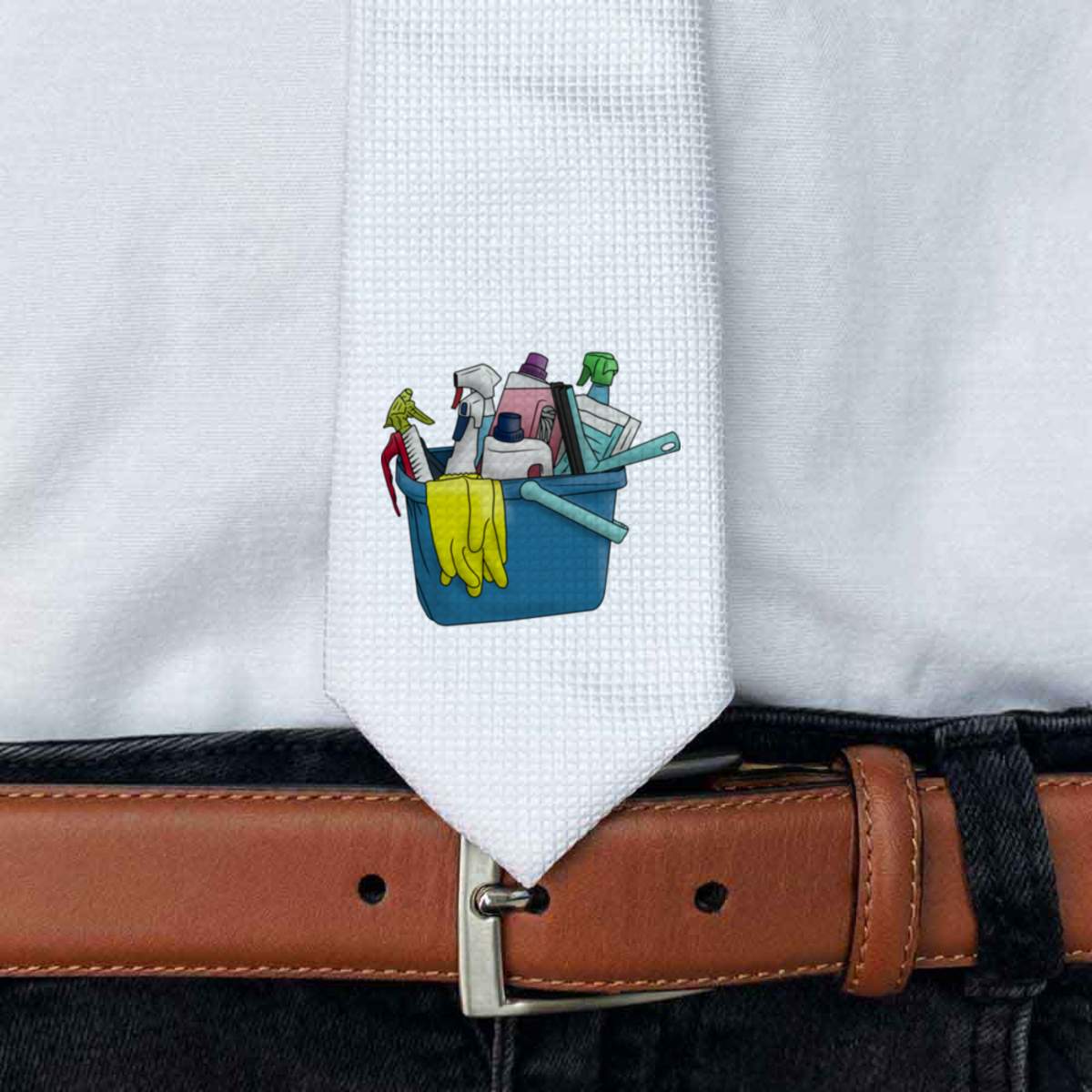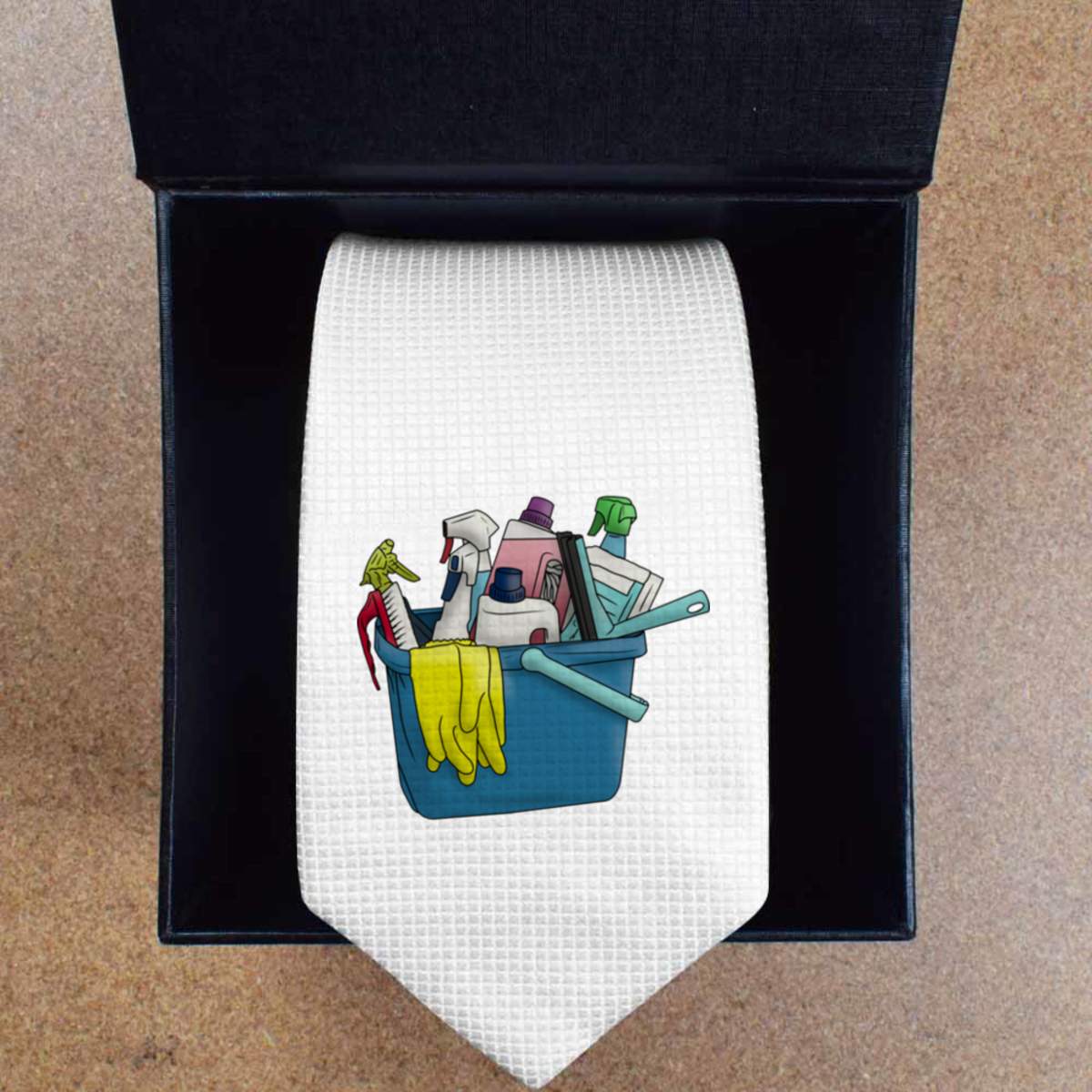 'Cleaning Products' White Tie / Necktie with Gift Box (AT00011925)