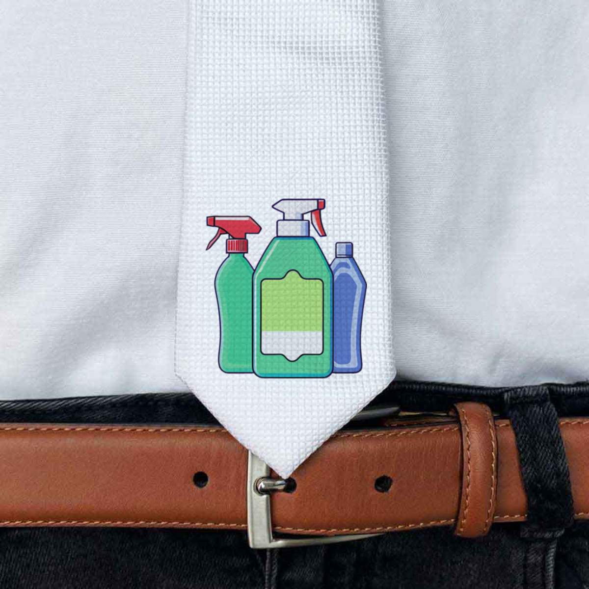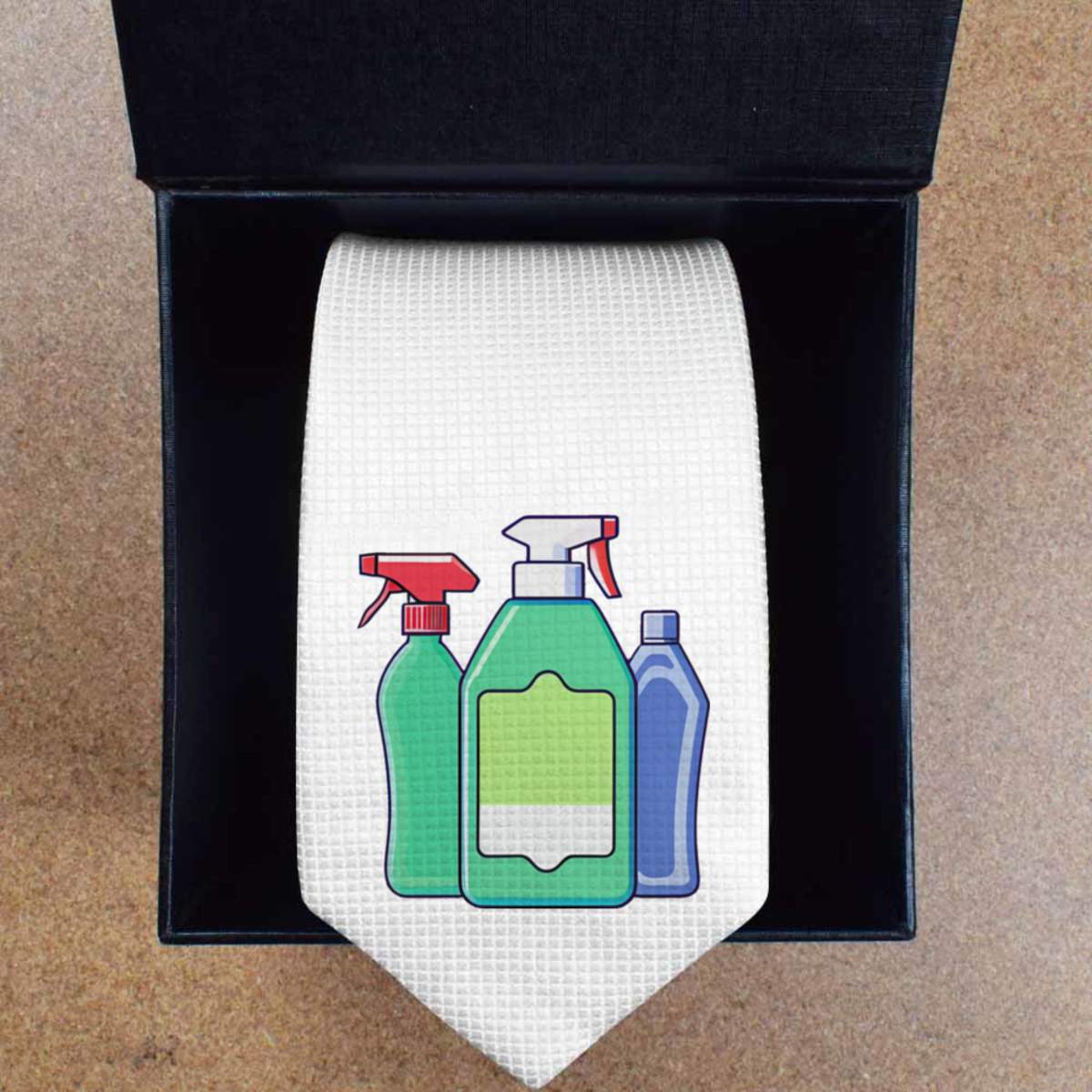 'Cleaning Products' White Tie / Necktie with Gift Box (AT00016659)