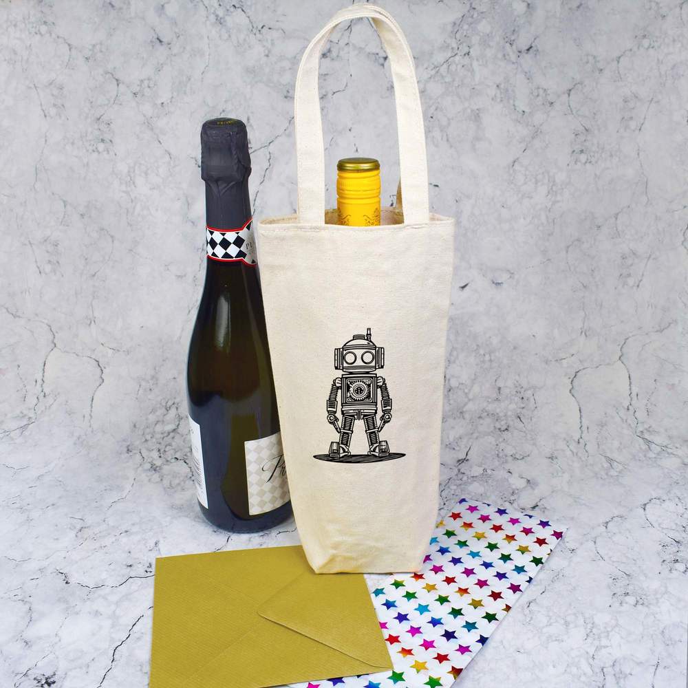 'Clockwork Steampunk Robot' Cotton Wine Bottle Gift / Travel Bag (BL00032884)