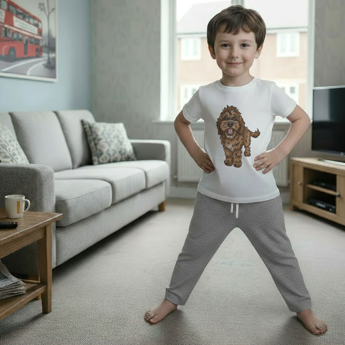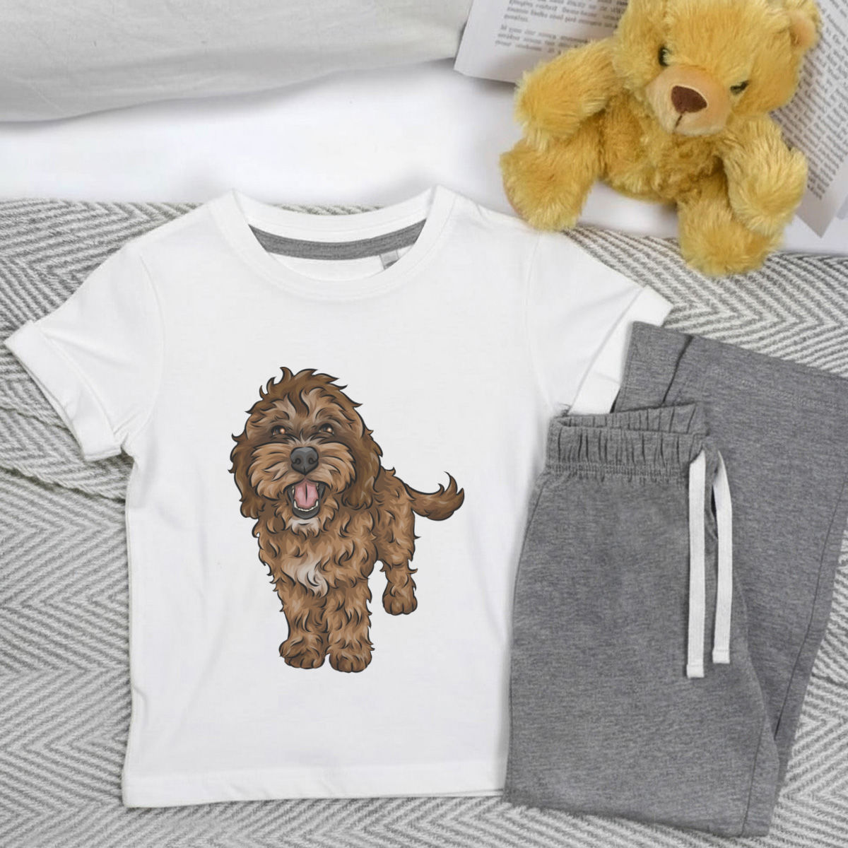 'Cockapoo' Kids Cotton Pyjama Set – Comfortable Children's Nightwear, Sleepwear and Loungewear - Unisex for Boys and Girls - Grey, 5-6 Years (KP00070329)
