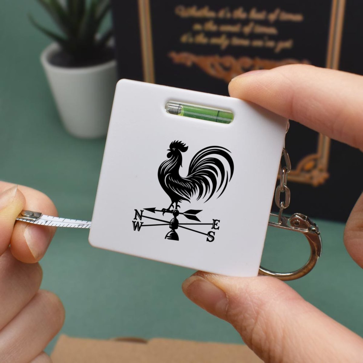 This multifunctional tool offers both a tape measure and spirit level in one handy little accessory. The retractable, 1 metre tape measure has both imperial and metric units, while the flat edges around its plastic casing provide the ability to check both vertical and horizontal surfaces with a mini spirit level. The compact and lightweight design makes it easy to carry around; simply attach with the keychain provided and whip it out when needed. Each keyring tape measure tool is printed on one side with a unique design.