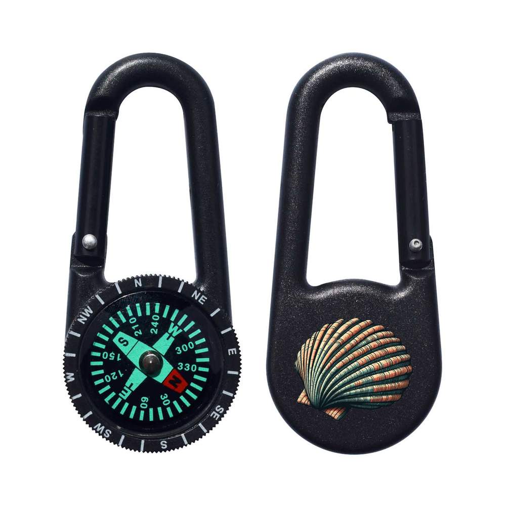 - A two in one keyring with a carabiner clip and handy compass