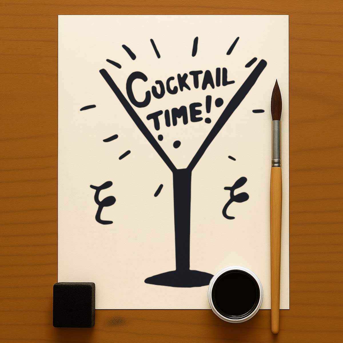 'Cocktail Time' Reusable Stencil – Durable Decorative Template for Painting and Spraying on Walls, Tiles, Wood, Fabric & Craft Projects - M (A5) (WS00029144)