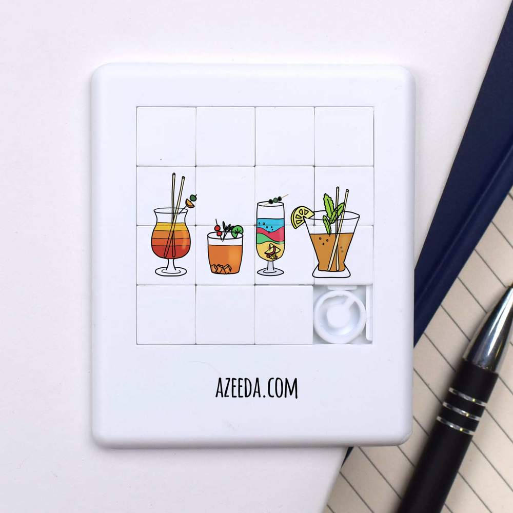 - Pocket sized puzzle with sliding square pieces