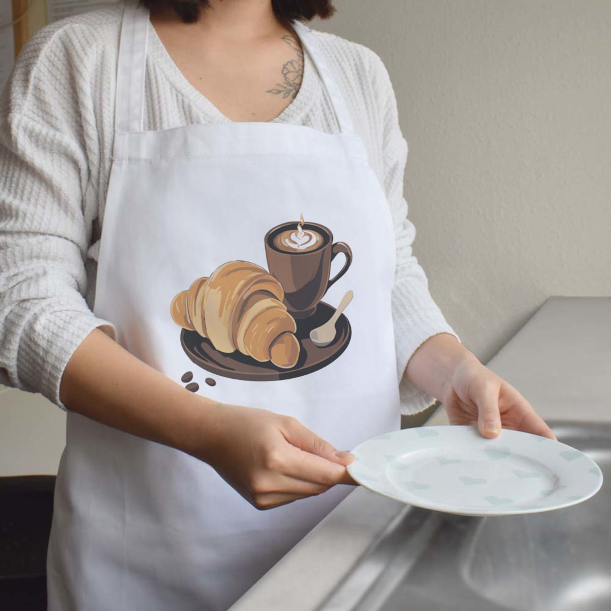 'Coffee And Croissant ' Unisex Cooking Apron (AP00064737)