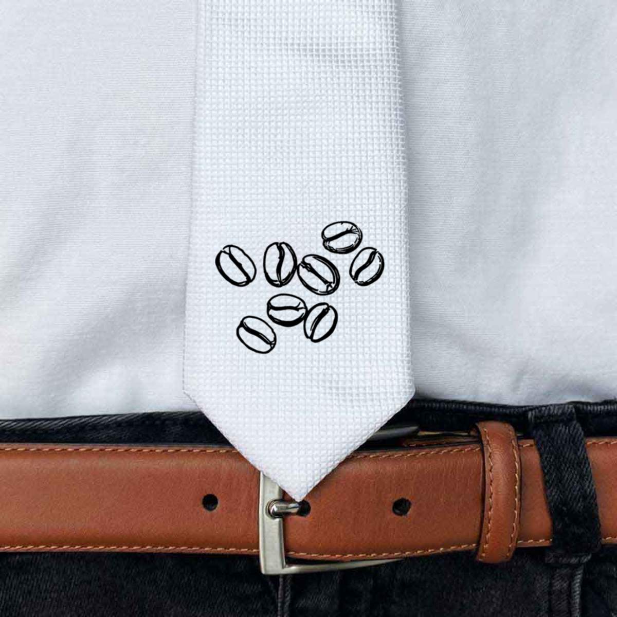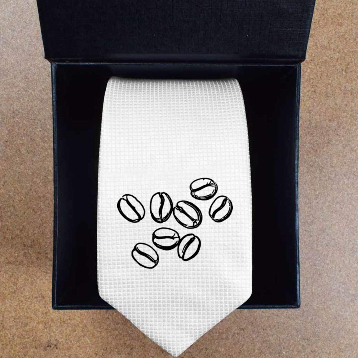 'Coffee Beans' White Tie / Necktie with Gift Box (AT00006538)