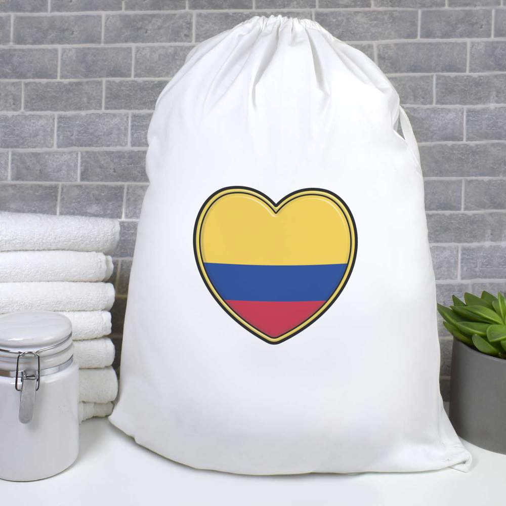 'A heart shape containing the flag of Colombia.'