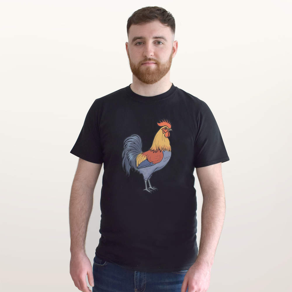 'Colorful Cockerel' Unisex T-Shirt - 100 % Cotton, Black, M (TA00304275)
