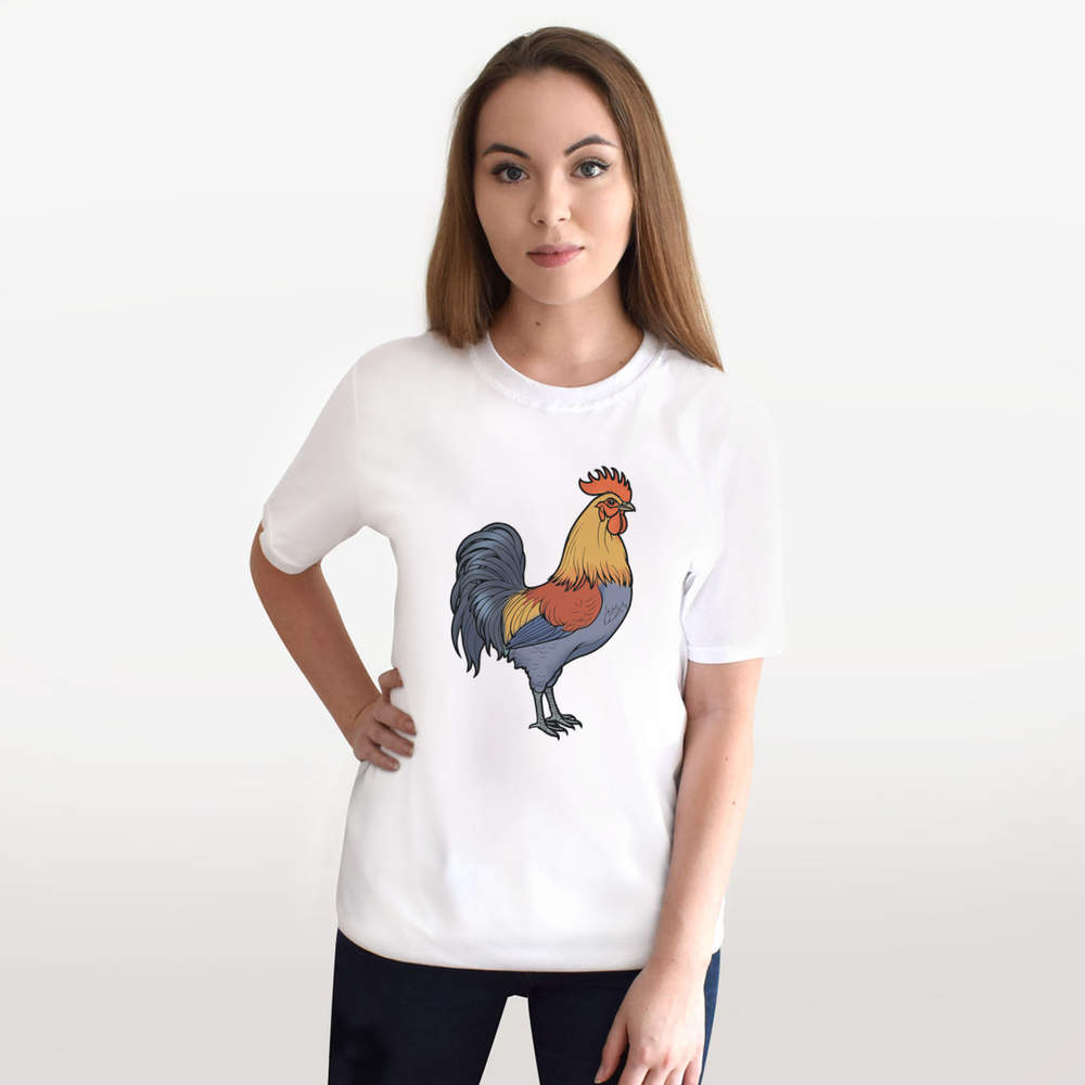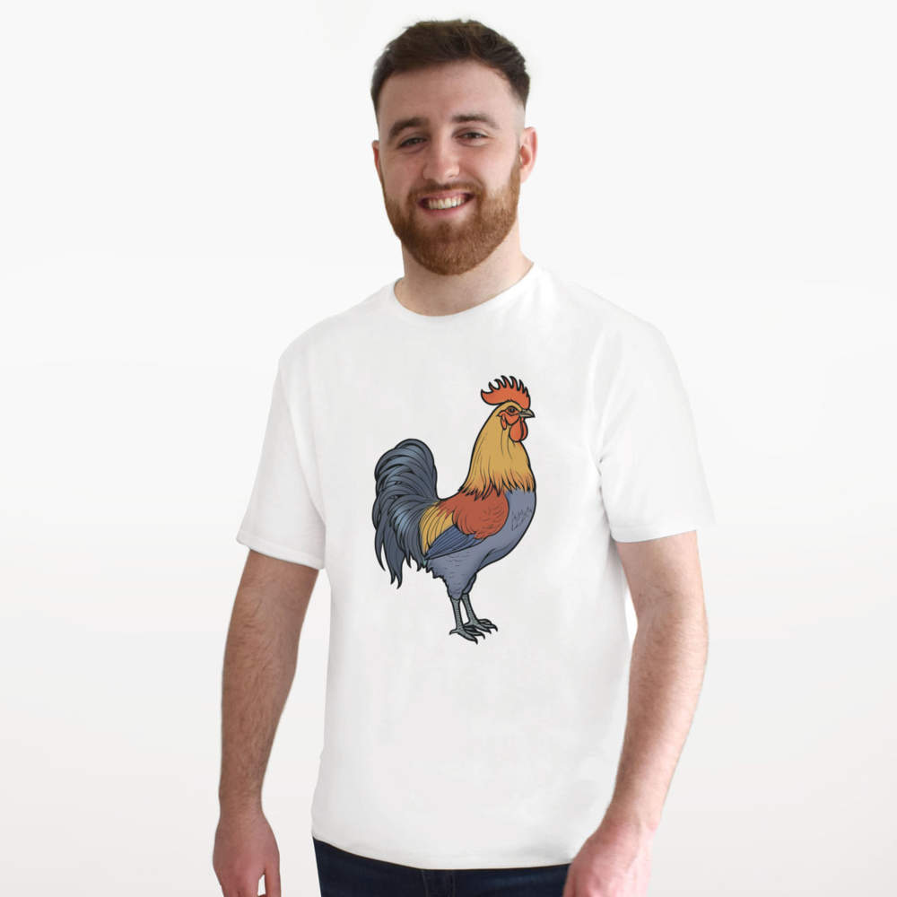 'Colorful Cockerel' Unisex T-Shirt - 100 % Cotton, White, M (TA00304279)