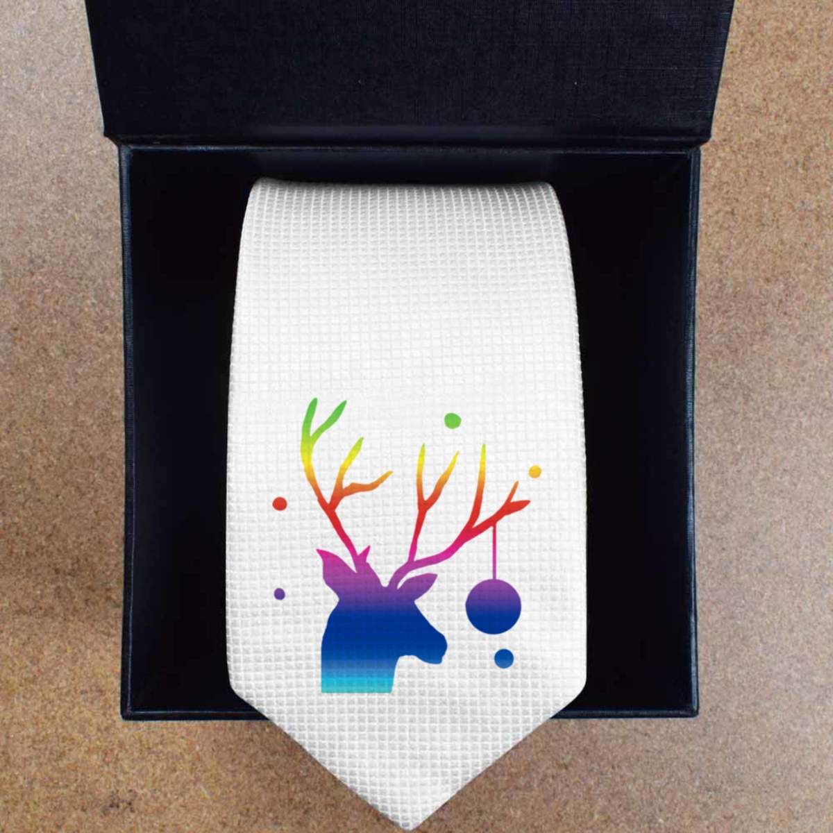 'Stag, Christmas, bauble, rainbow'