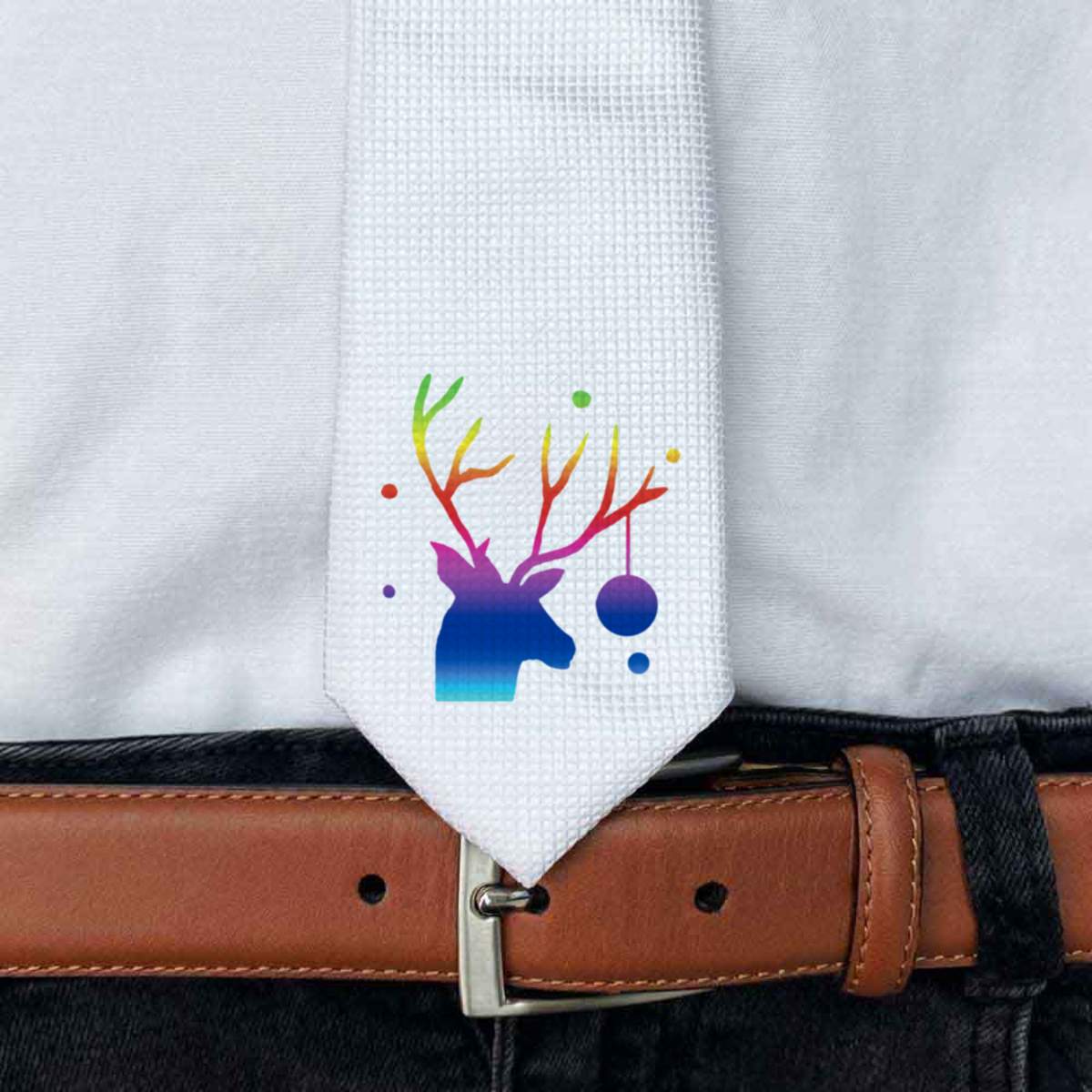 This stylish slim white tie is guaranteed to add class to any outfit. Printed on the front with a design from one of our talented designers, these ties are perfect for formal events, special occasions or making a statement at the office.