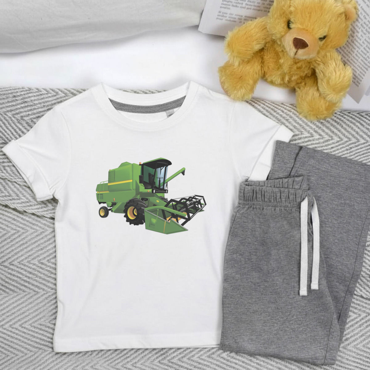 'Combine Harvester' Kids Cotton Pyjama Set – Comfortable Children's Nightwear, Sleepwear and Loungewear - Unisex for Boys and Girls - Grey, 3-4 Years (KP00126971)