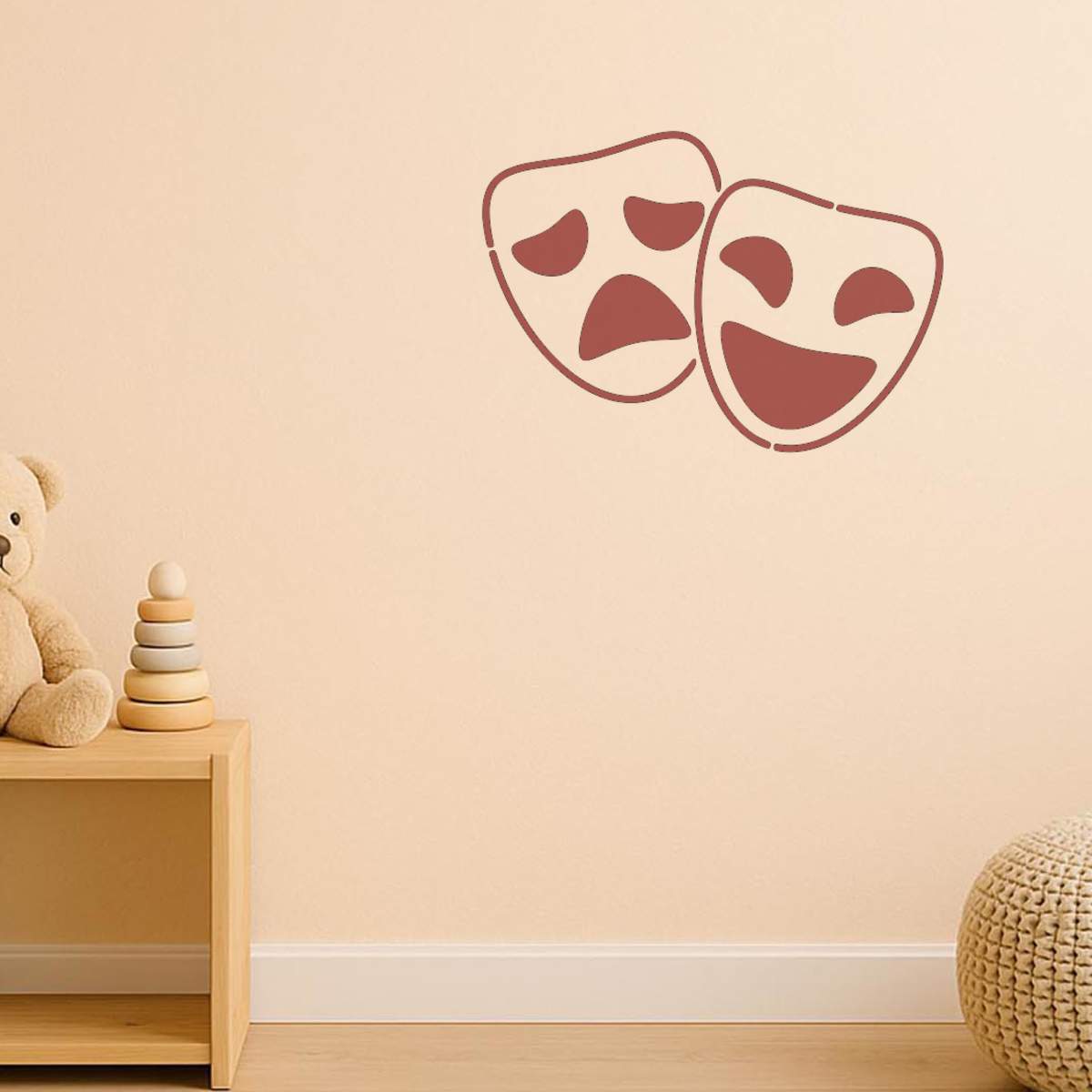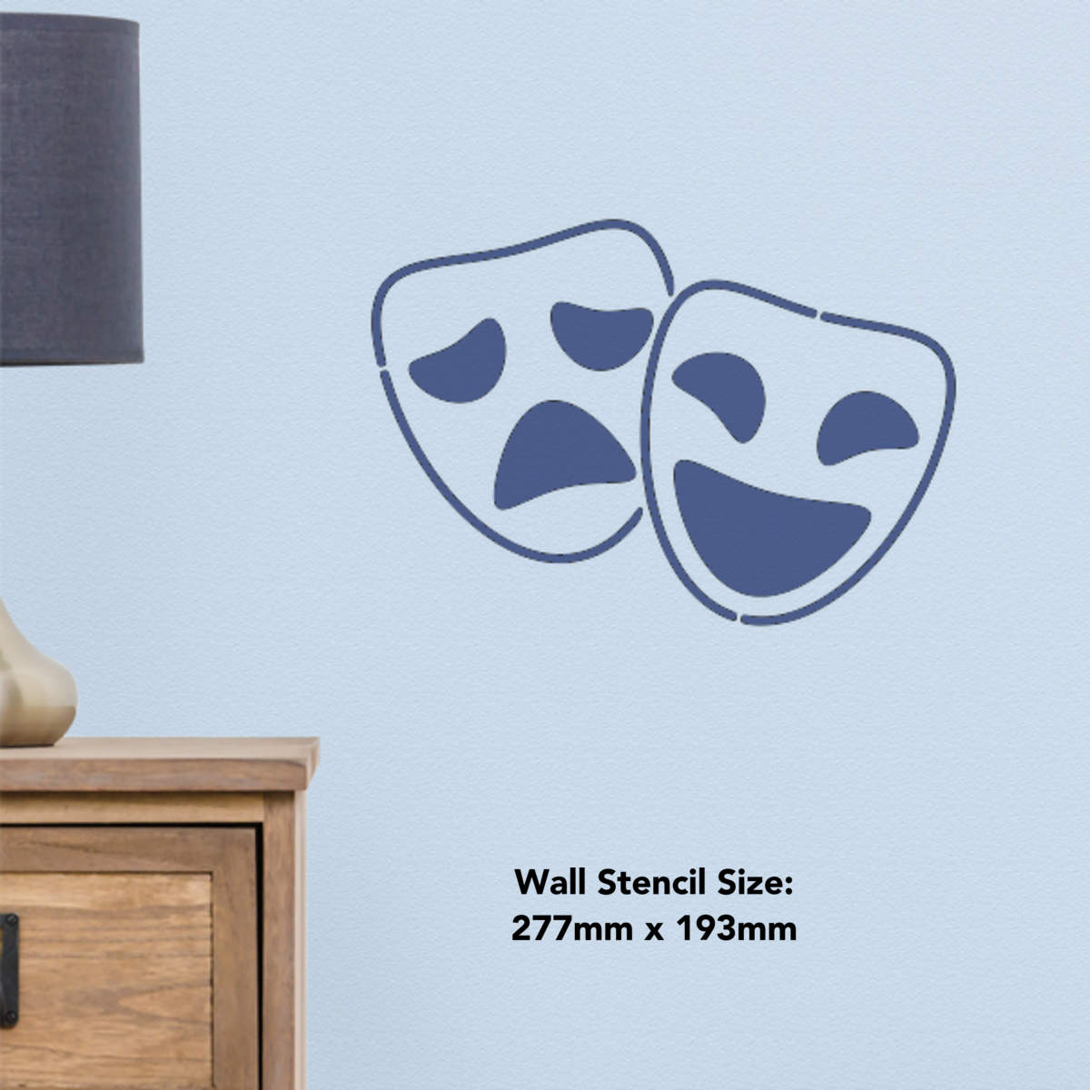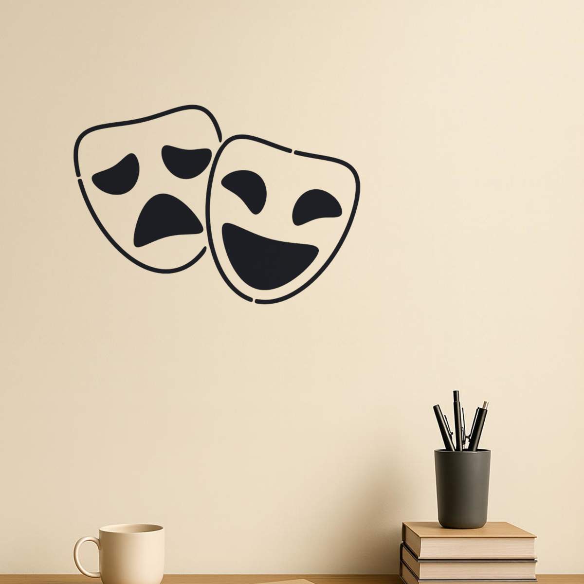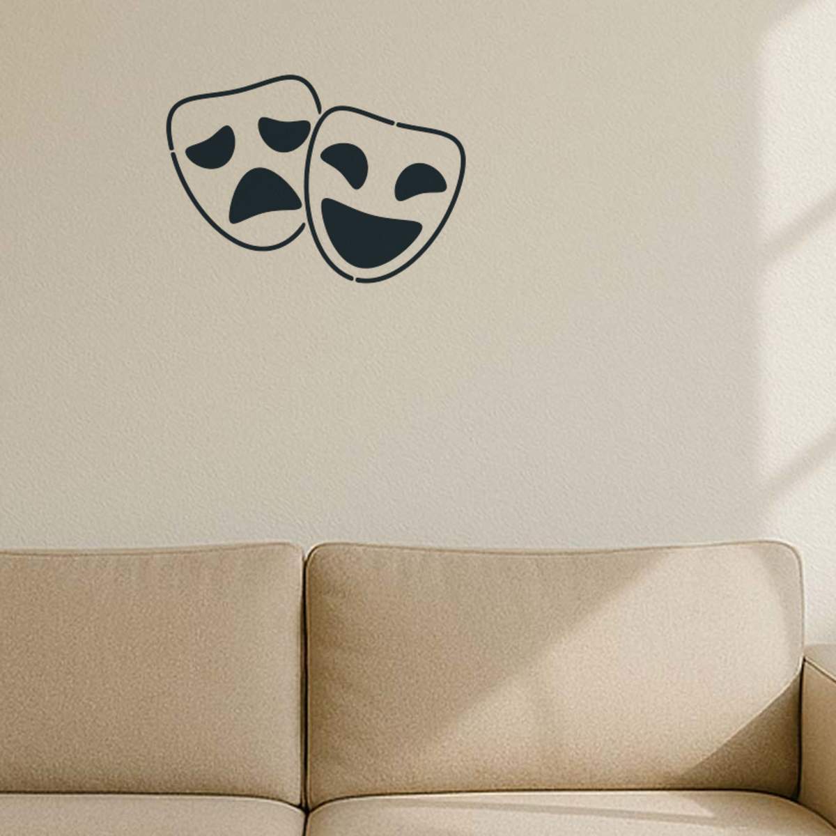'Comedy & Tragedy Masks' Reusable Stencil – Durable Decorative Template for Painting and Spraying on Walls, Tiles, Wood, Fabric & Craft Projects - L (A4) (WS00027147)