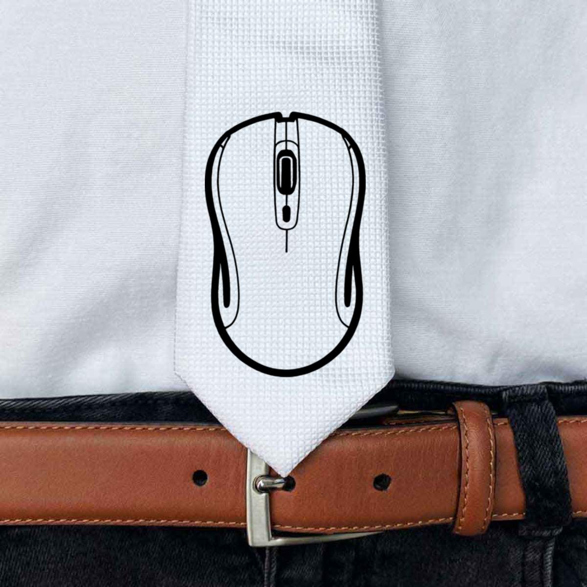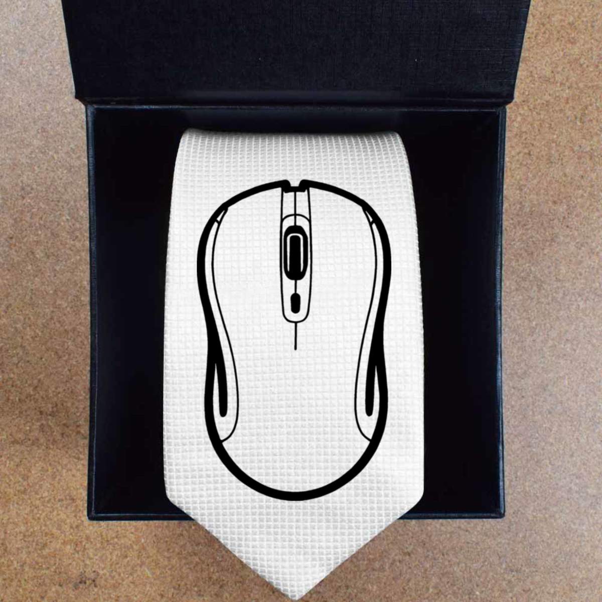 'Computer Mouse' White Tie / Necktie with Gift Box (AT00017398)