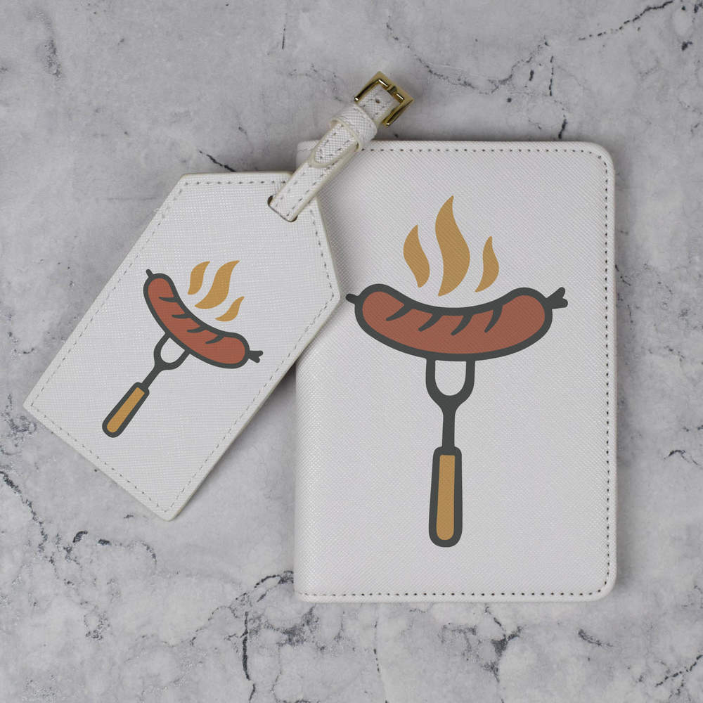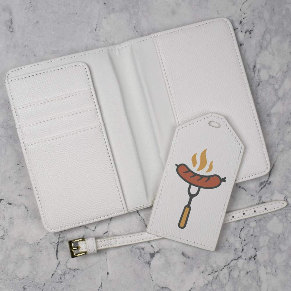A luxury travel set for holiday makers and jet setters! This premium duo consists of a passport cover and matching luggage tag; both made from white, leather-look PU and printed with a unique design.