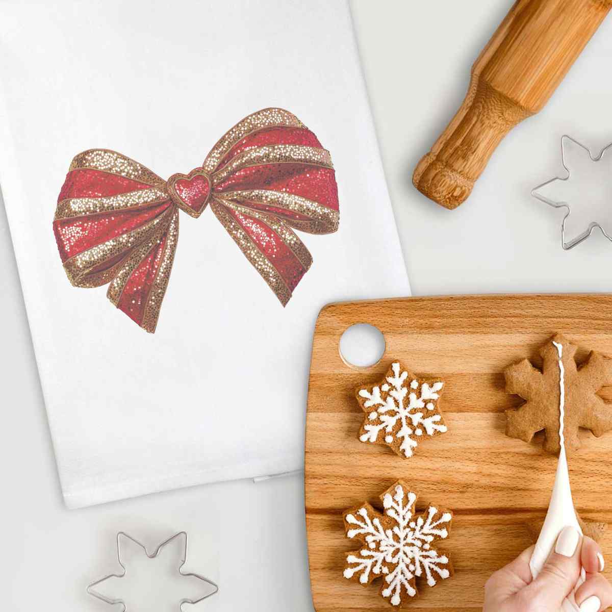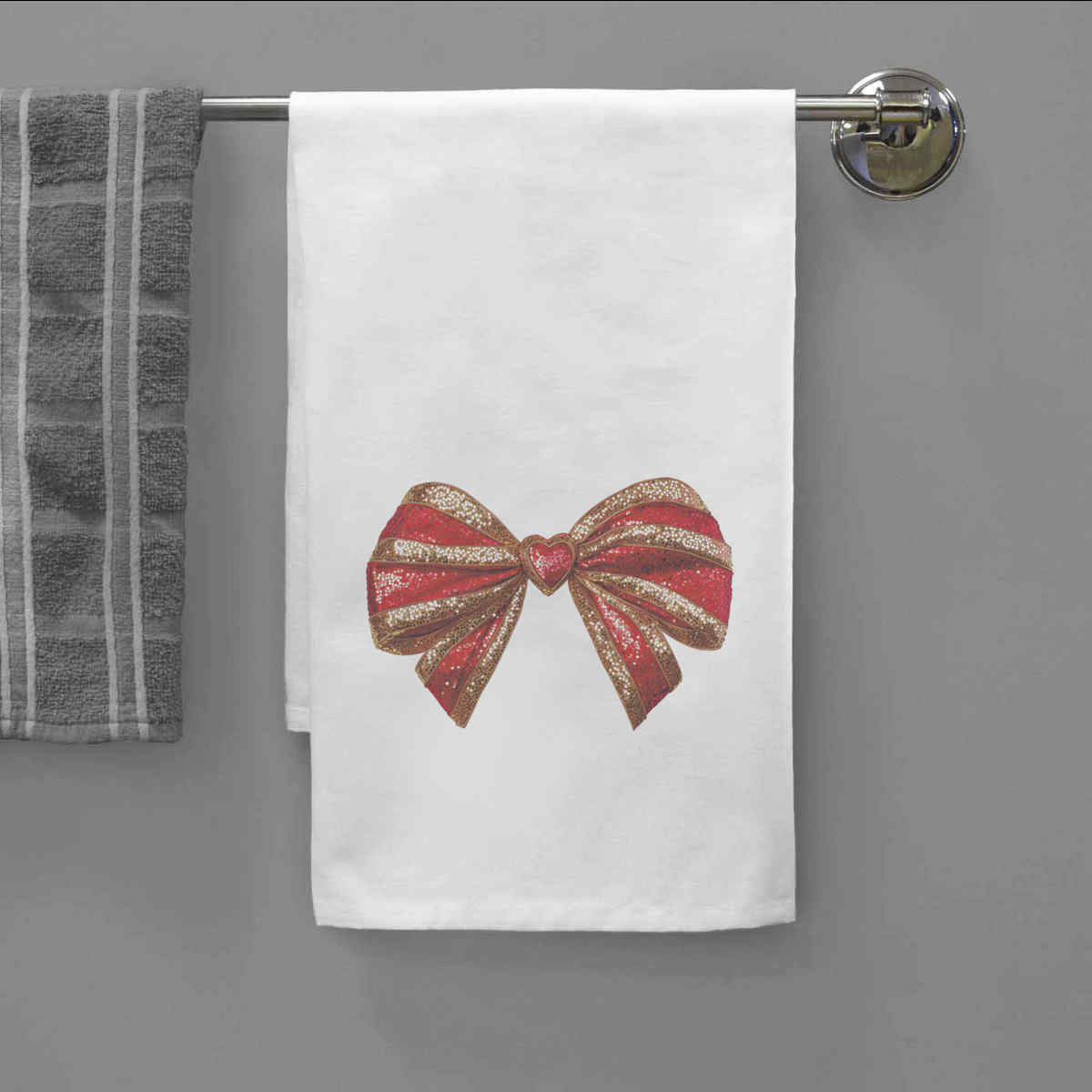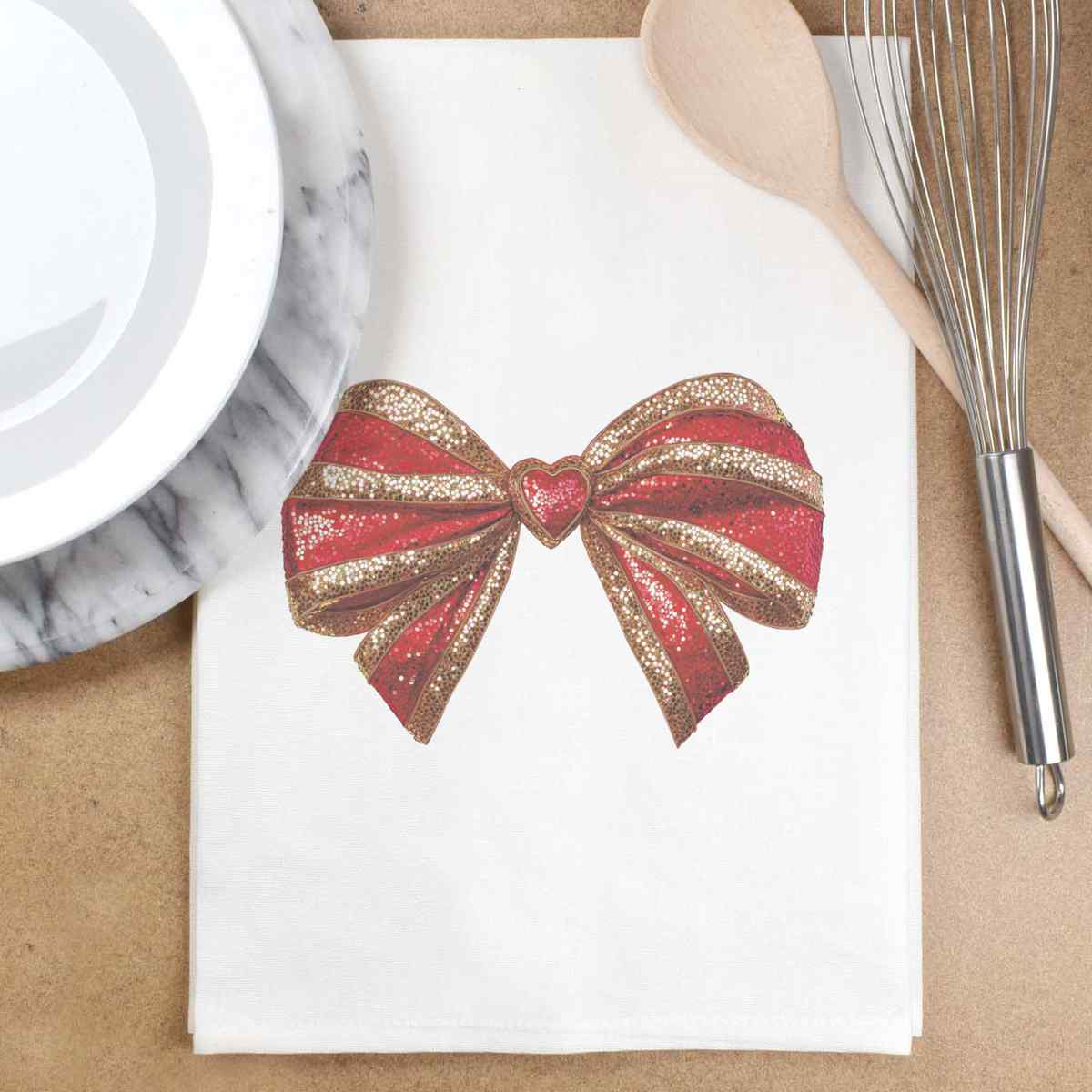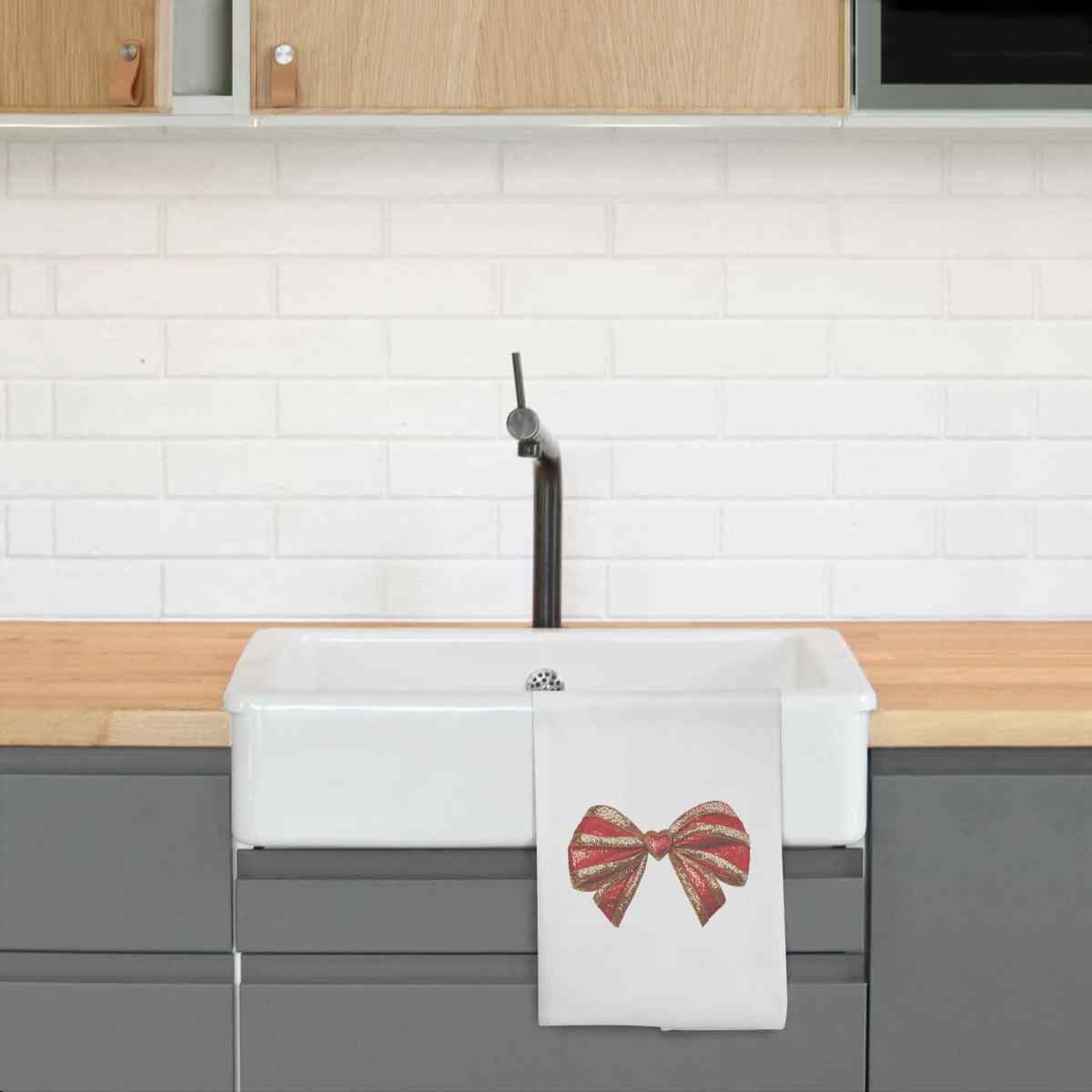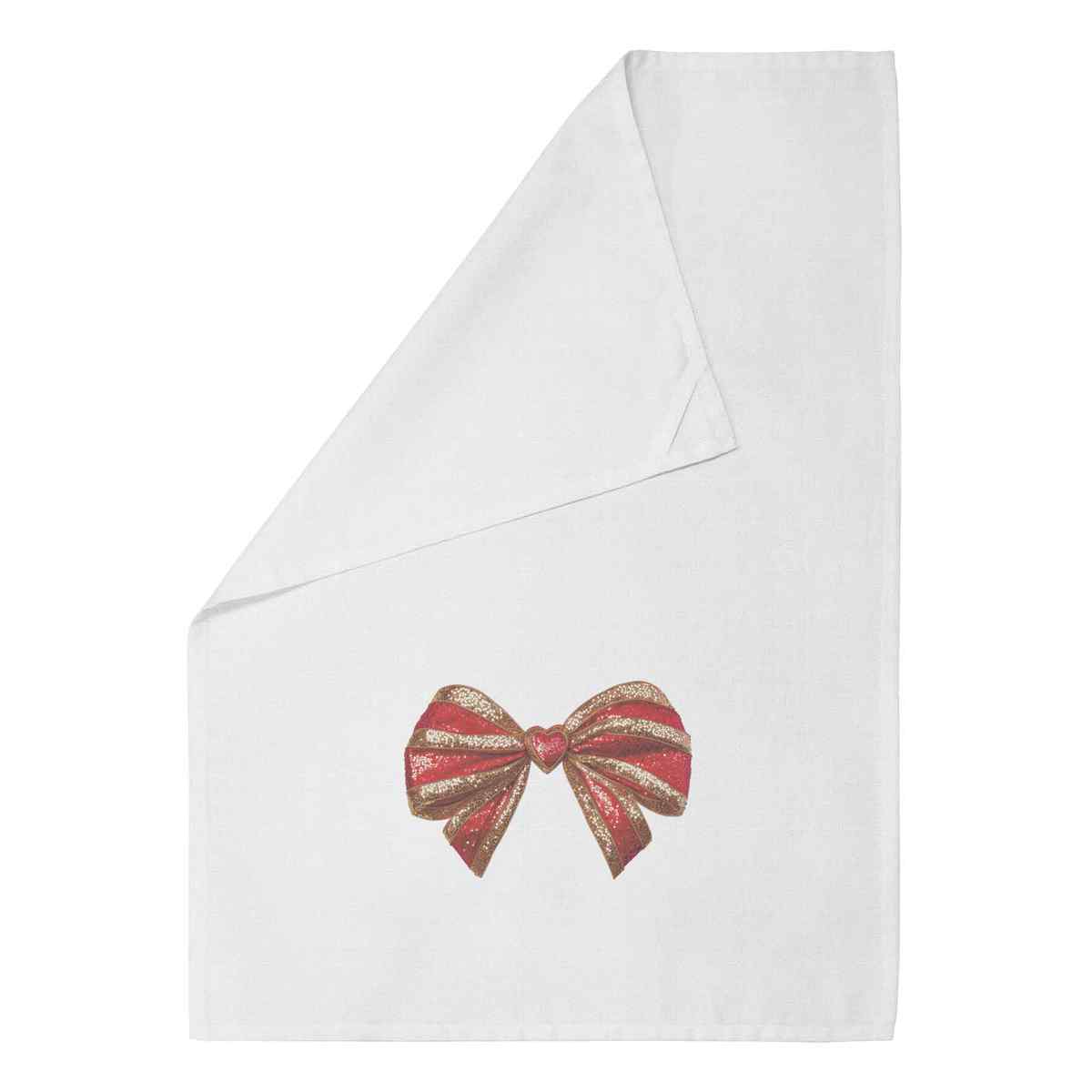 - White cotton tea towel with hanging loop