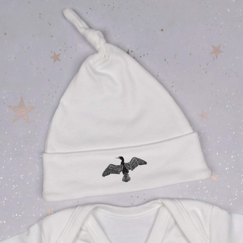 Keep little ones cosy and stylish with this super soft beanie hat. Our baby beanie hats have a knotted top and are printed on the turnover with a unique design. Made from 100% cotton, it can be machine washed and still retain its shape. This beanie hat has a stretch fit so one size fits all, with an approximate circumference of 32cm, it's ideal for babies up to 12 months old.