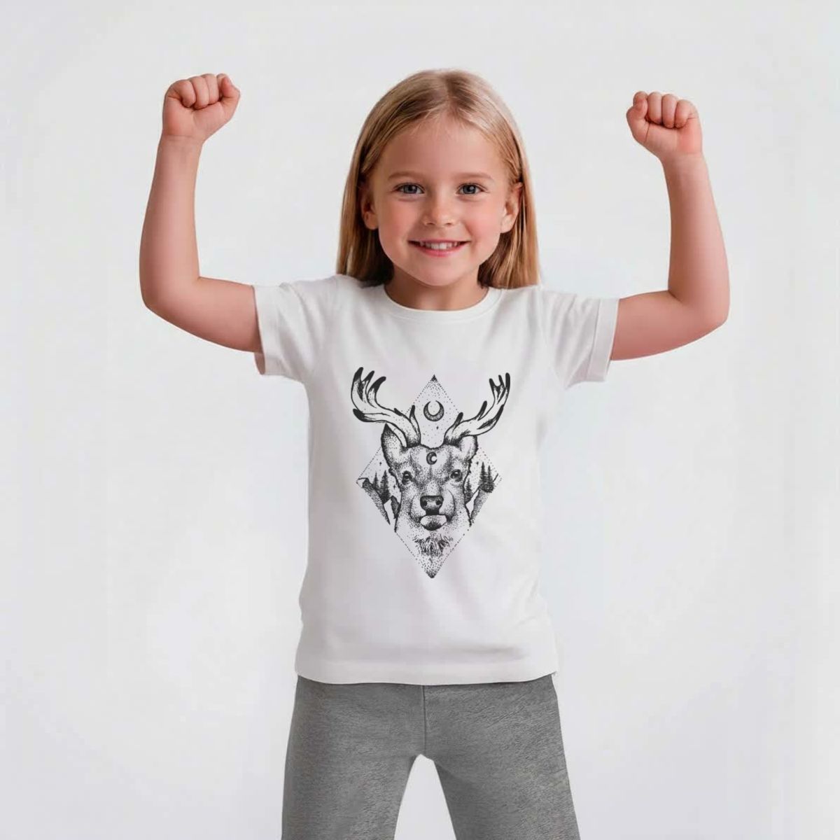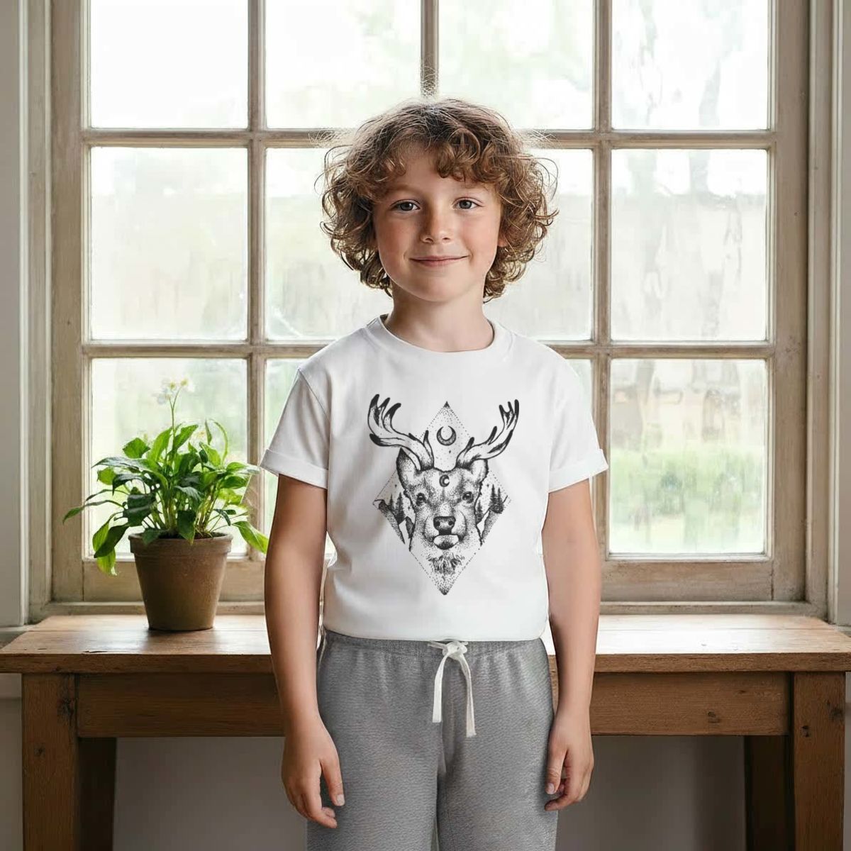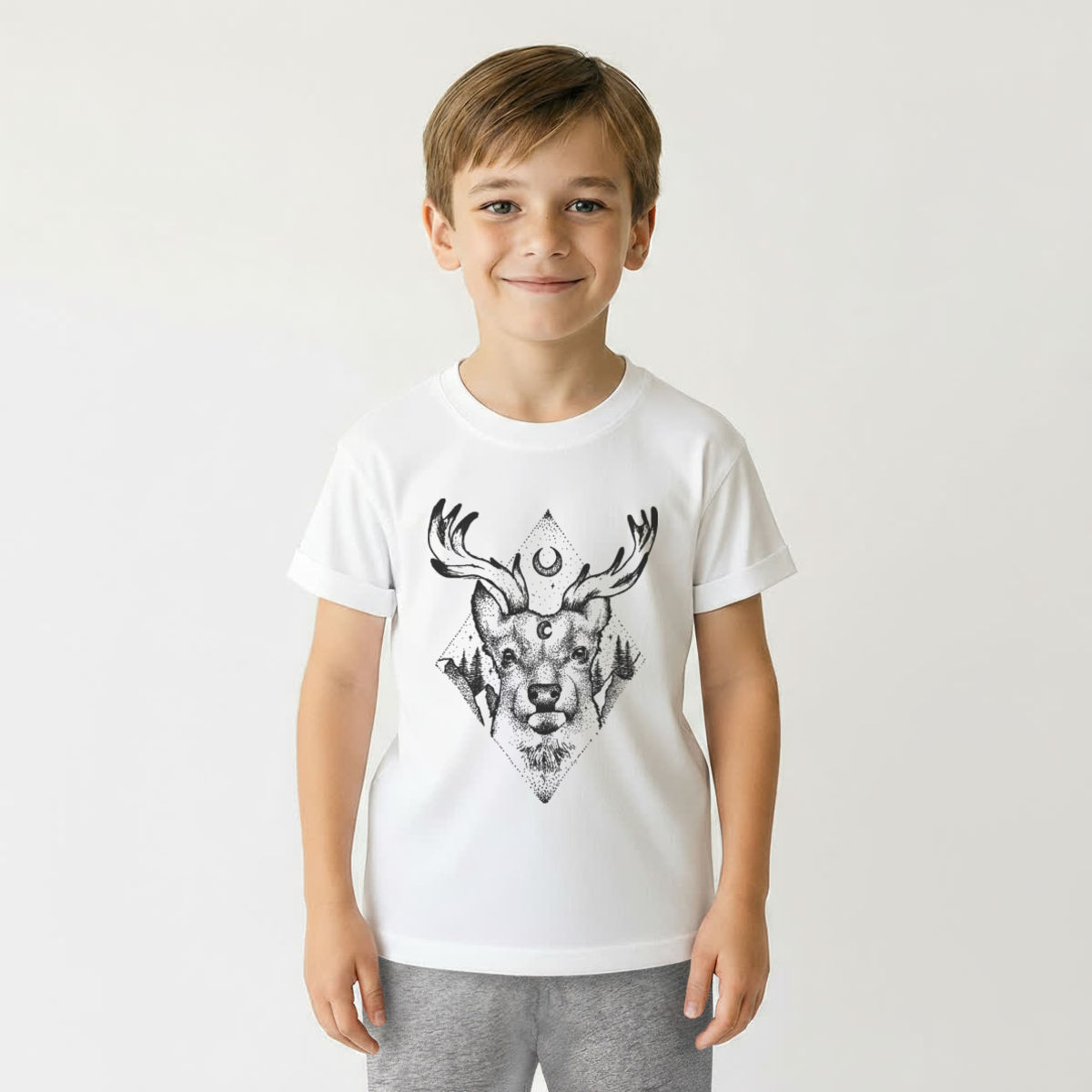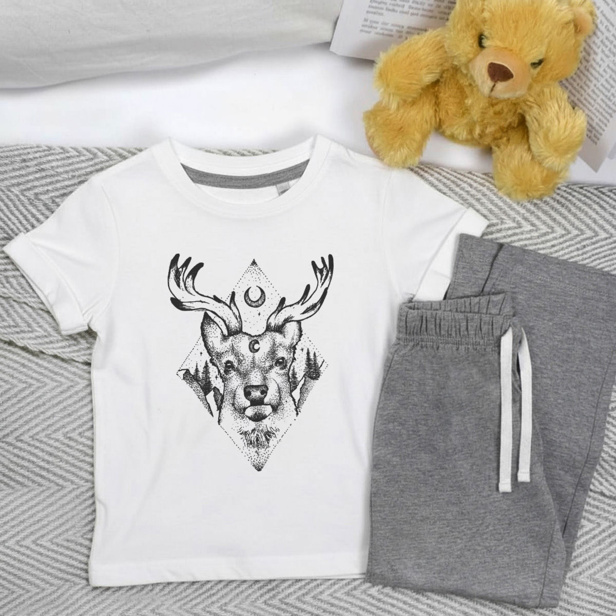 'Cosmic Stag Head' Kids Cotton Pyjama Set – Comfortable Children's Nightwear, Sleepwear and Loungewear - Unisex for Boys and Girls - Grey, 7-8 Years (KP00016127)