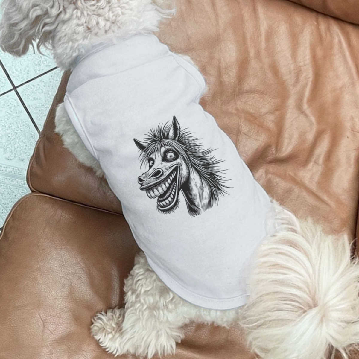 Give your furry friend a fresh new look with this adorable white dog T-shirt, designed to turn heads with its unique print on the back! Made from 100% polyester, it offers a comfortable yet firm stretch, perfect for both playtime adventures and cozy cuddles. Whether your dog loves to play outdoors or cuddle indoors, this T-shirt provides all-day comfort and style.
