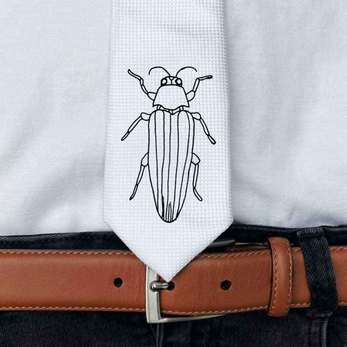 'Creepy Cockroach' White Tie / Necktie with Gift Box (AT00003115)