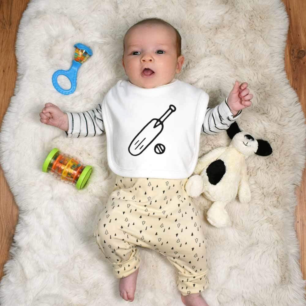 'Cricket Bat & Ball' Soft Cotton Baby Bib (BI00012082)