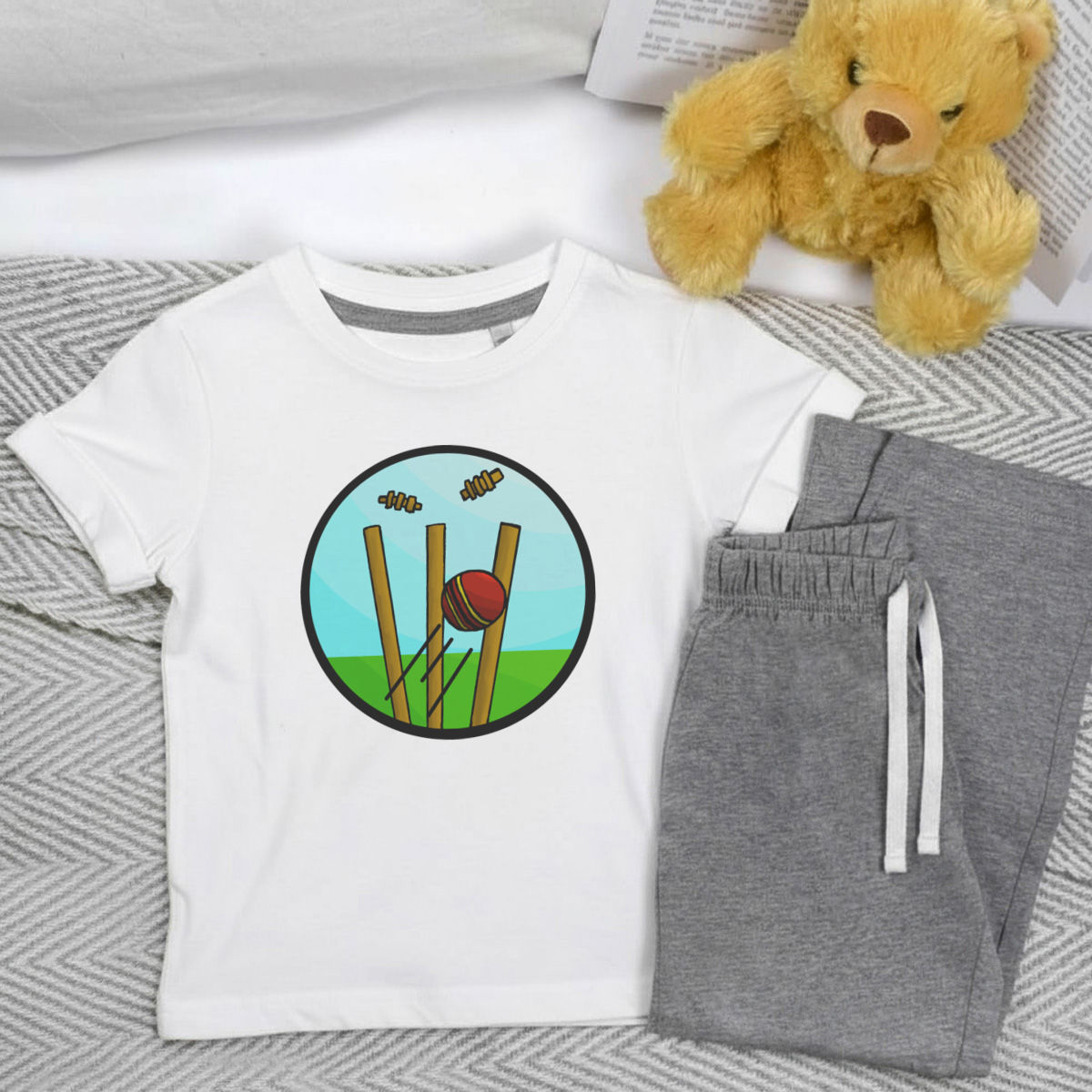 'Cricket Wickets' Kids Cotton Pyjama Set – Comfortable Children's Nightwear, Sleepwear and Loungewear - Unisex for Boys and Girls - Grey, 7-8 Years (KP00051835)
