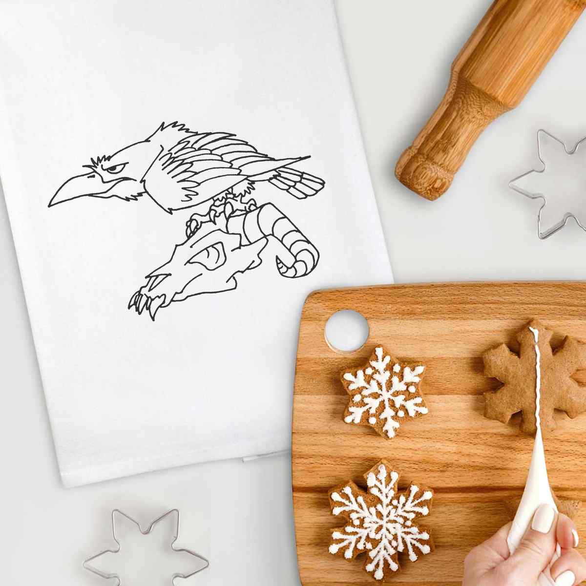 'Crow On Skull' Cotton Tea Towel / Dish Cloth (TW003275)