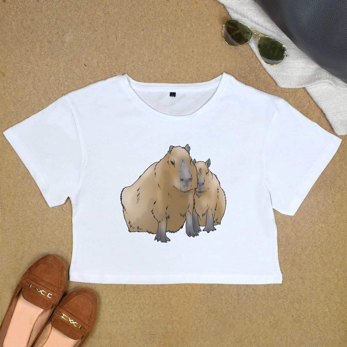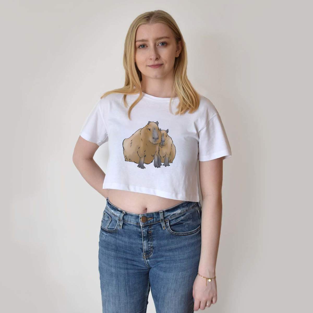 'Women's, Crop Top, White, Crew neck, Cropped'