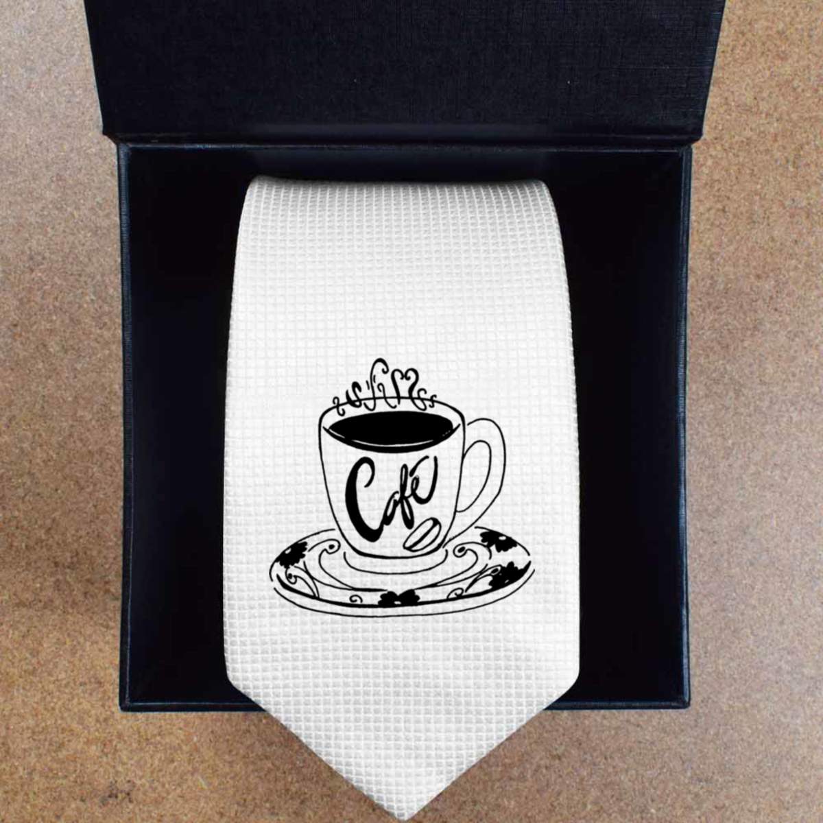 'Cup Of Coffee' White Tie / Necktie with Gift Box (AT00002532)
