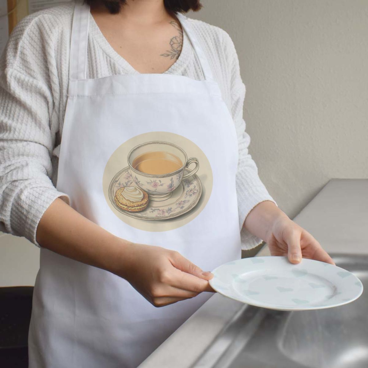 'Cup of Tea with a Custard Cream Biscuit' Unisex Cooking Apron (AP00075912)