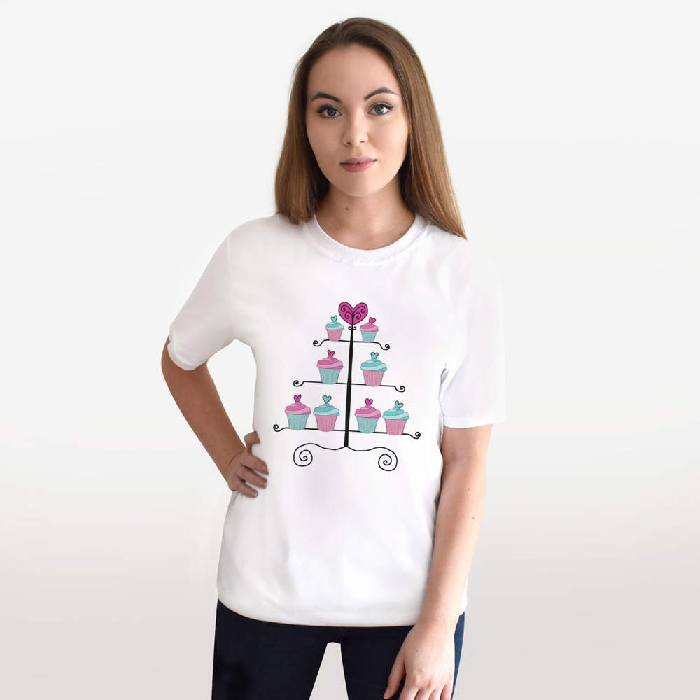 'Cupcakes On Stand' Unisex T-Shirt - 100 % Cotton, White, S (TA00205252)