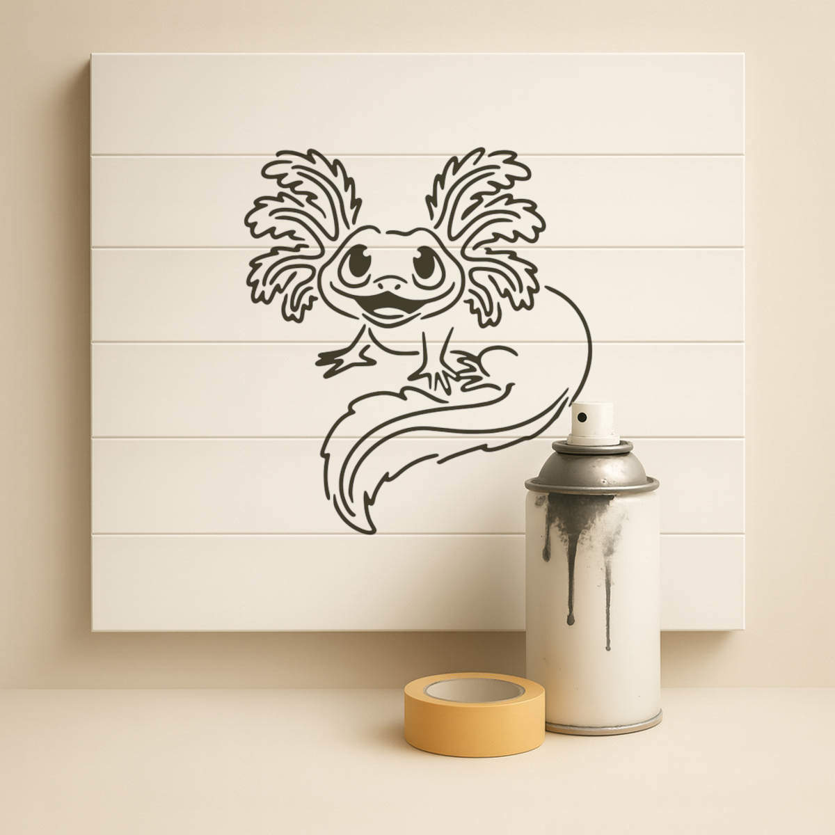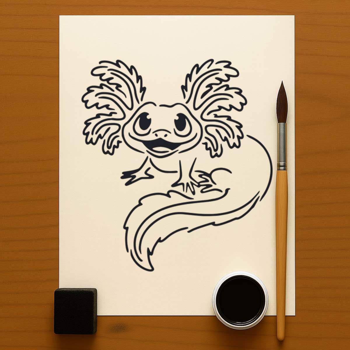 'Cute Axolotl' Reusable Stencil – Durable Decorative Template for Painting and Spraying on Walls, Tiles, Wood, Fabric & Craft Projects - M (A5) (WS00030408)