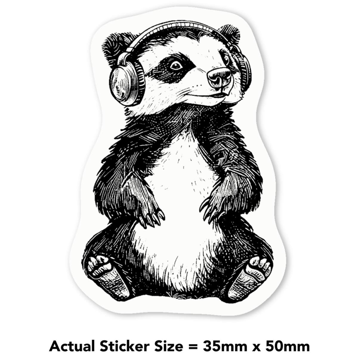 'Cute Badger Wearing Headphones' Premium Vinyl Decal Stickers – Waterproof, Durable & Easy to Apply - Ideal for Cars, Windows, Bins and More (DW054994)