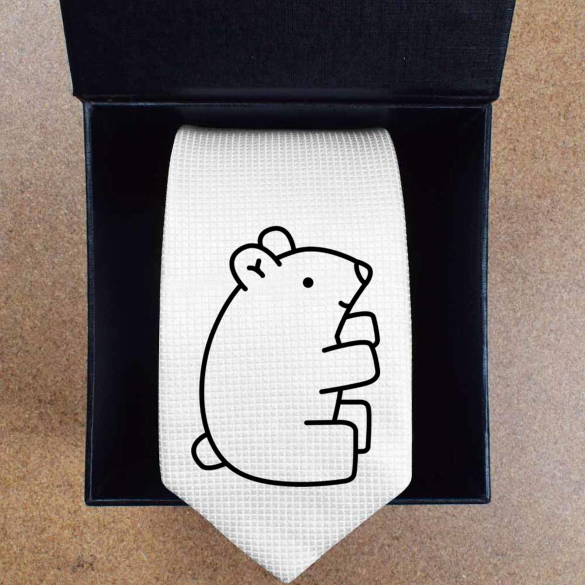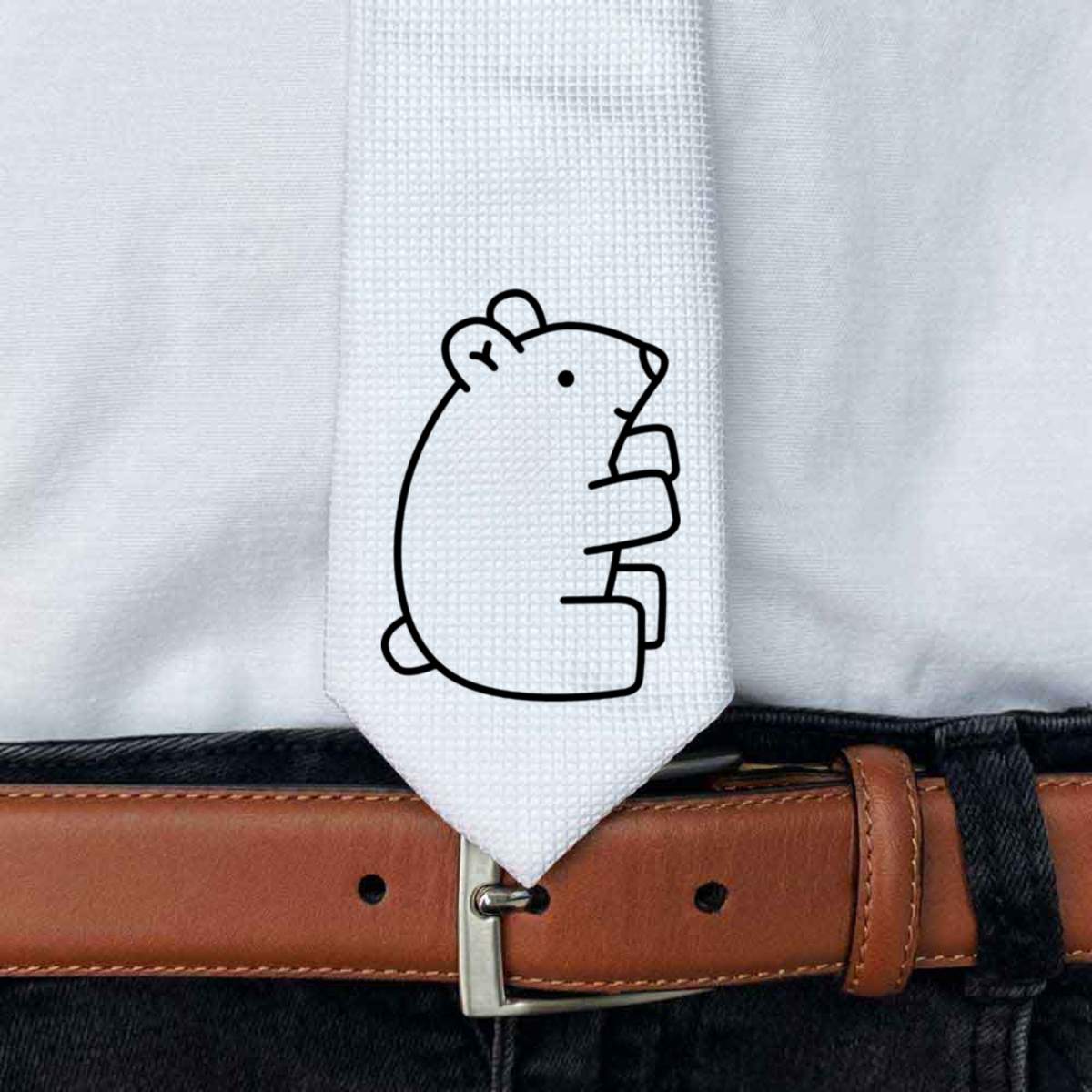 This stylish slim white tie is guaranteed to add class to any outfit. Printed on the front with a design from one of our talented designers, these ties are perfect for formal events, special occasions or making a statement at the office.
