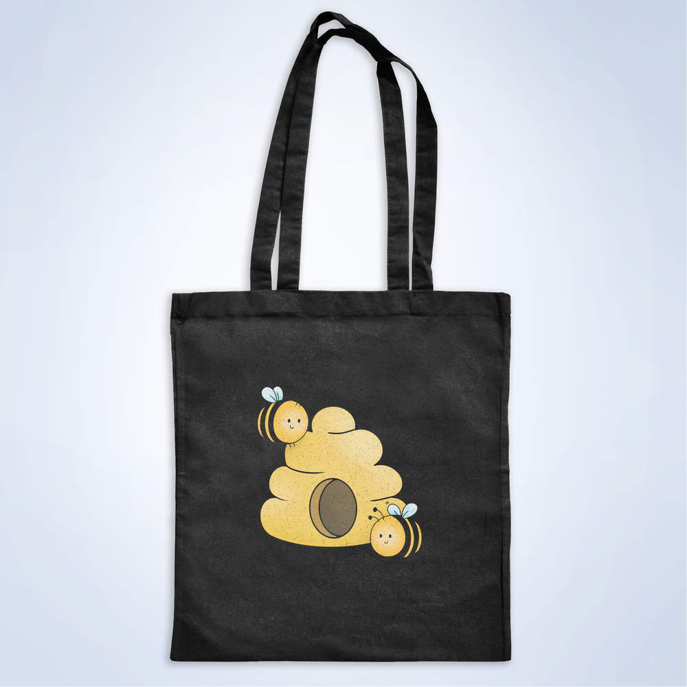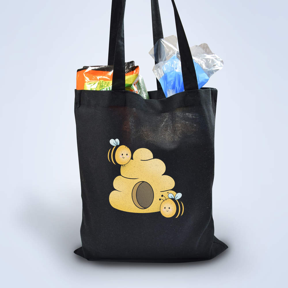 'Cute Bees & Hive' Classic Black Tote Shopper Bag (ZB00025161)