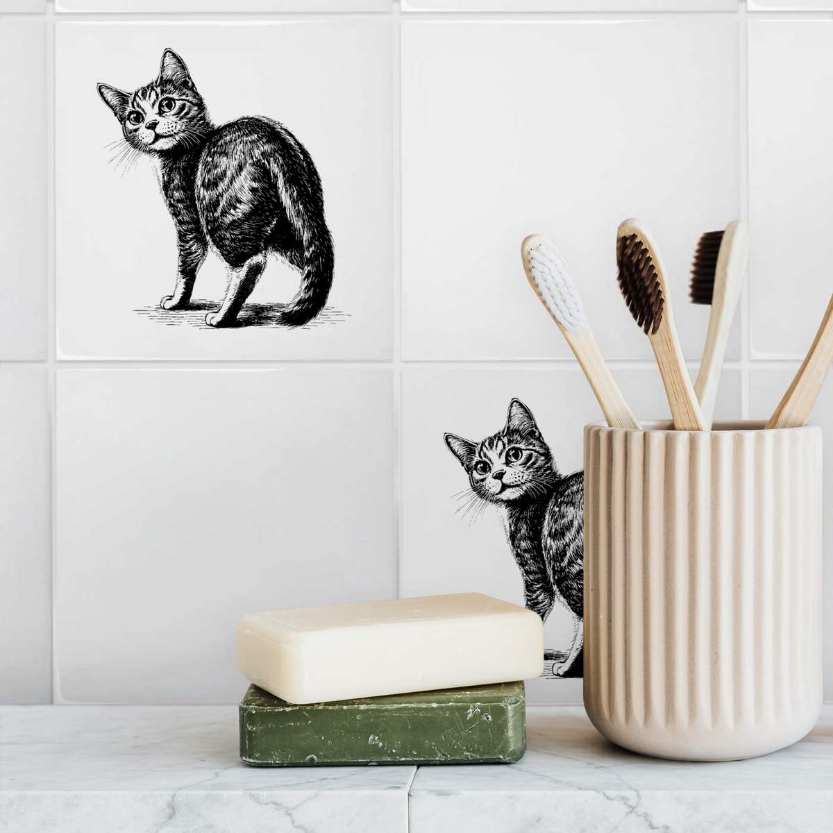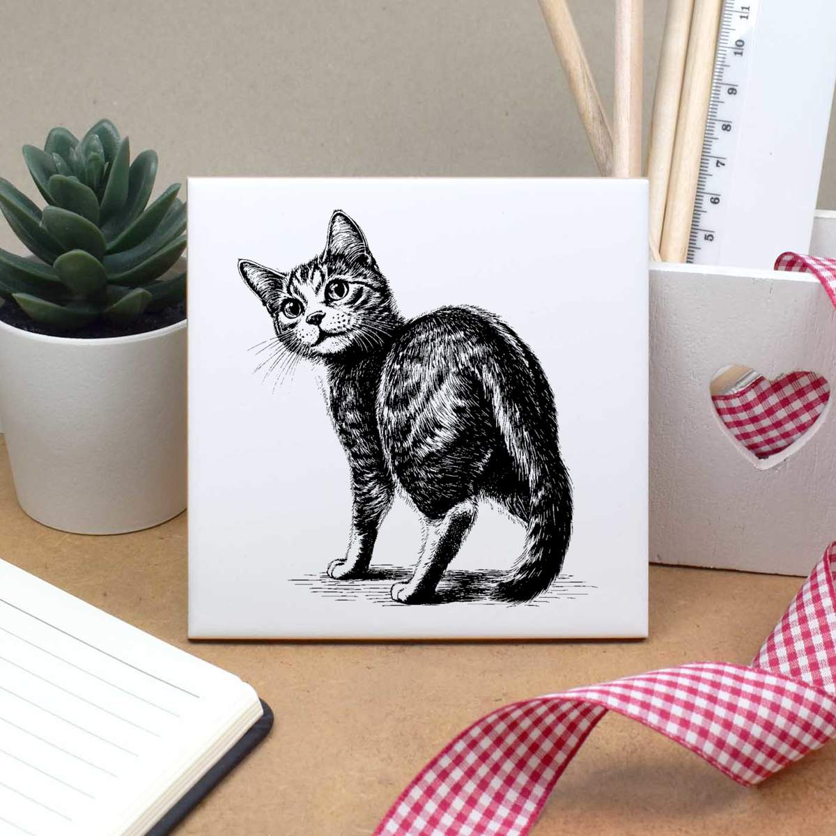 'Cute Cat Looking Back' 108mm Square Ceramic Tile (TD00029275)