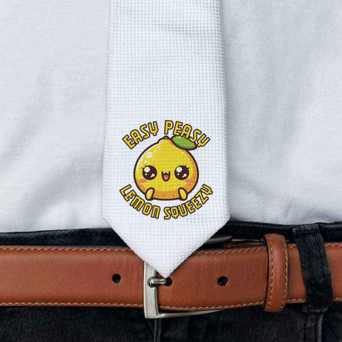This stylish slim white tie is guaranteed to add class to any outfit. Printed on the front with a design from one of our talented designers, these ties are perfect for formal events, special occasions or making a statement at the office.