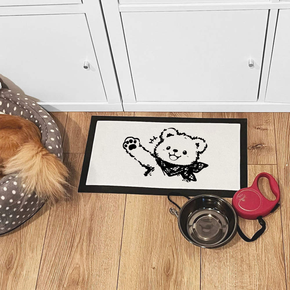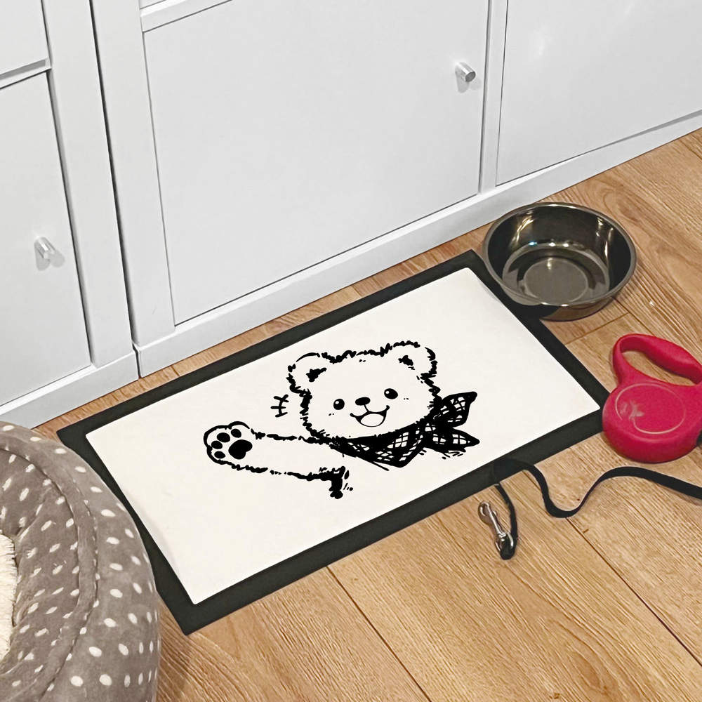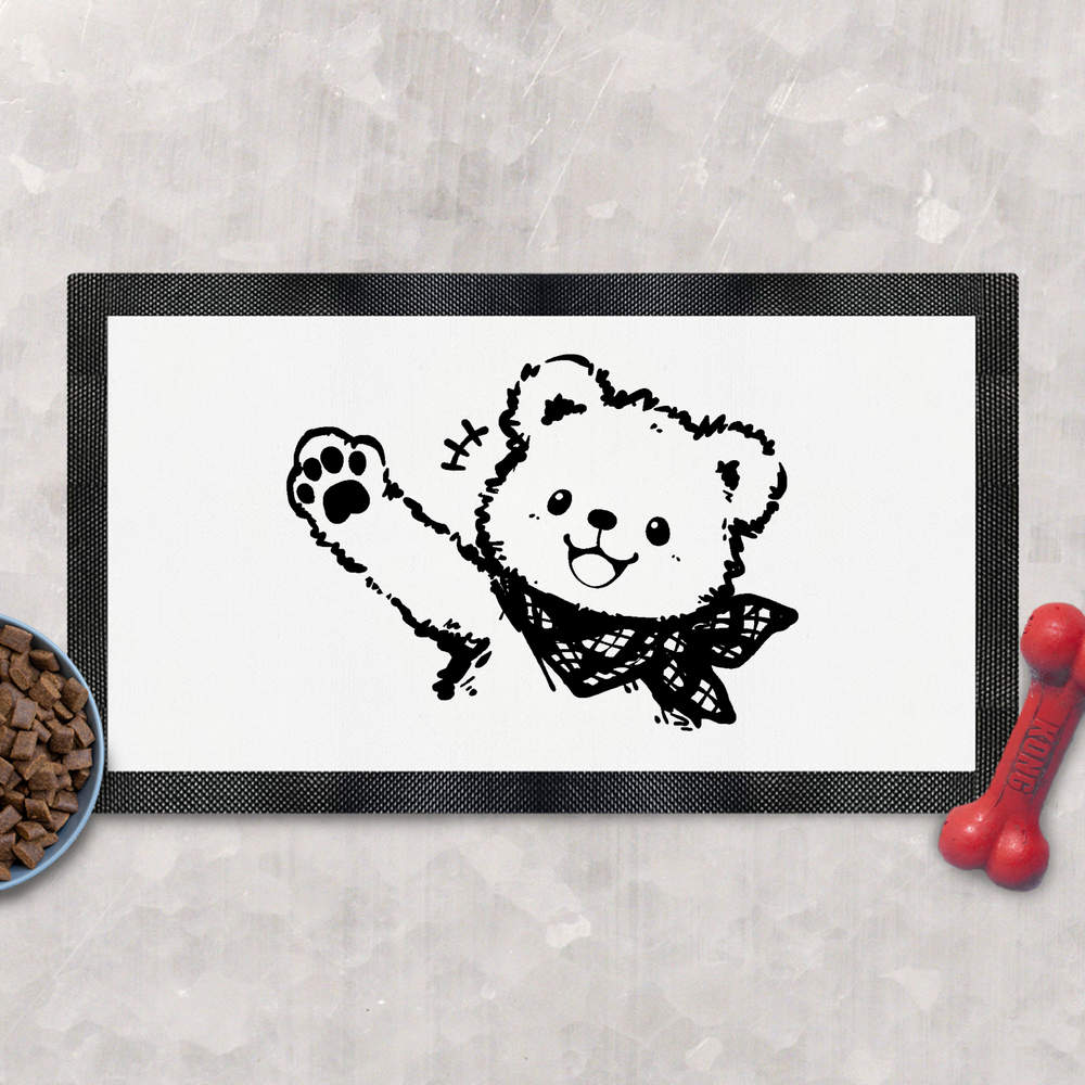'Cute Happy Bear Waving' Pet Feeding Mat (PM00032040)
