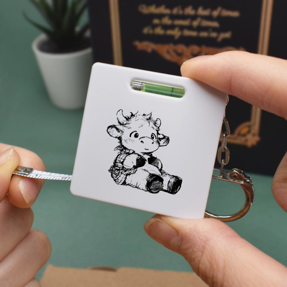 This multifunctional tool offers both a tape measure and spirit level in one handy little accessory. The retractable, 1 metre tape measure has both imperial and metric units, while the flat edges around its plastic casing provide the ability to check both vertical and horizontal surfaces with a mini spirit level. The compact and lightweight design makes it easy to carry around; simply attach with the keychain provided and whip it out when needed. Each keyring tape measure tool is printed on one side with a unique design.