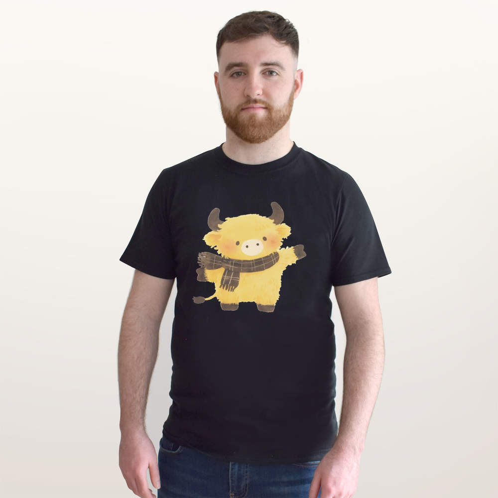 'Cute Highland Cow with Scarf' Unisex T-Shirt - 100% Cotton (S-XXL) (TA056144)